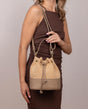 With the adjustable and detachable leather shoulder strap, the "Nuria" bucket bag can be worn either over the shoulder or crossbody as desired. The comfortable, thoughtful closure with a leather drawstring and gold-colored eyelets not only provides security but also maintains the casual, relaxed style. Inside, the bag offers a generous layout with a zippered compartment and two open slip pockets to help you keep your belongings organized and secure. The soft lining and the incorporated Gusti logo label crown the design. Perfect for any occasion, whether in everyday life or for special occasions.