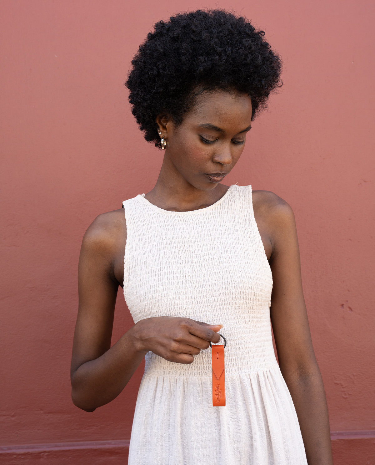 The “Yani” keychain is a leather accessory for men and women that exudes a sense of quality thanks to its hand-stitched craftsmanship. The visible stitching highlights the artisanal character and gives the accessory an authentic look. Thanks to the sturdy metal ring, keys can be securely attached and easily carried. “Yani” is intentionally kept simple and impresses with its clean lines and comfortable feel in everyday use.