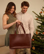 The extra-large interior of "Agatha" provides ample space for your 15-inch laptop, water bottle, wallet, notebooks, keys, and pencil case. Additionally, the large opening offers enough storage space for a spontaneous shopping trip. The leather carry handles complete the design, while the option to personalise "Agatha" with an engraving makes it a particularly unique gift. This bag not only meets the demands of your everyday life but also supports an industry committed to environmental protection and fair labor practices. A must-have for anyone who wants to combine functionality and style.