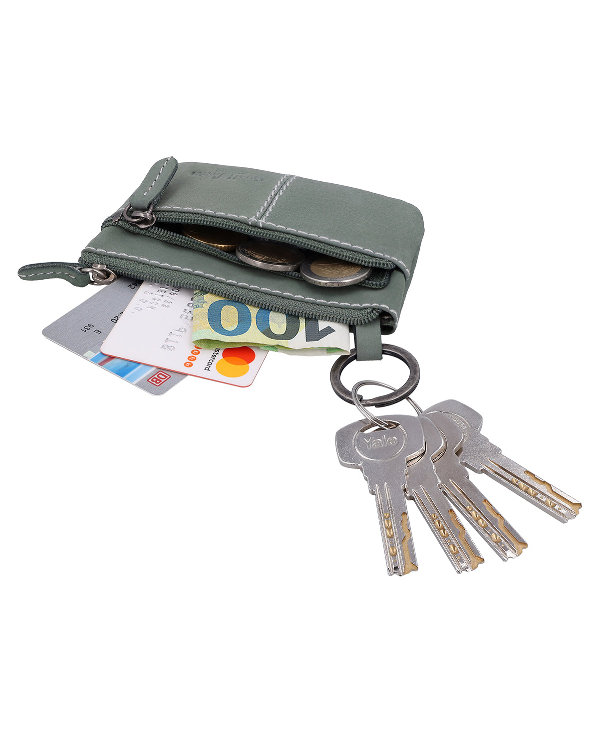 The larger compartment has an inner keyring you can attach your keys to, as well as enough space to keep some notes or your credit card safe. The small patch pocket is the perfect place to store some coins or a shopping trolley chip.