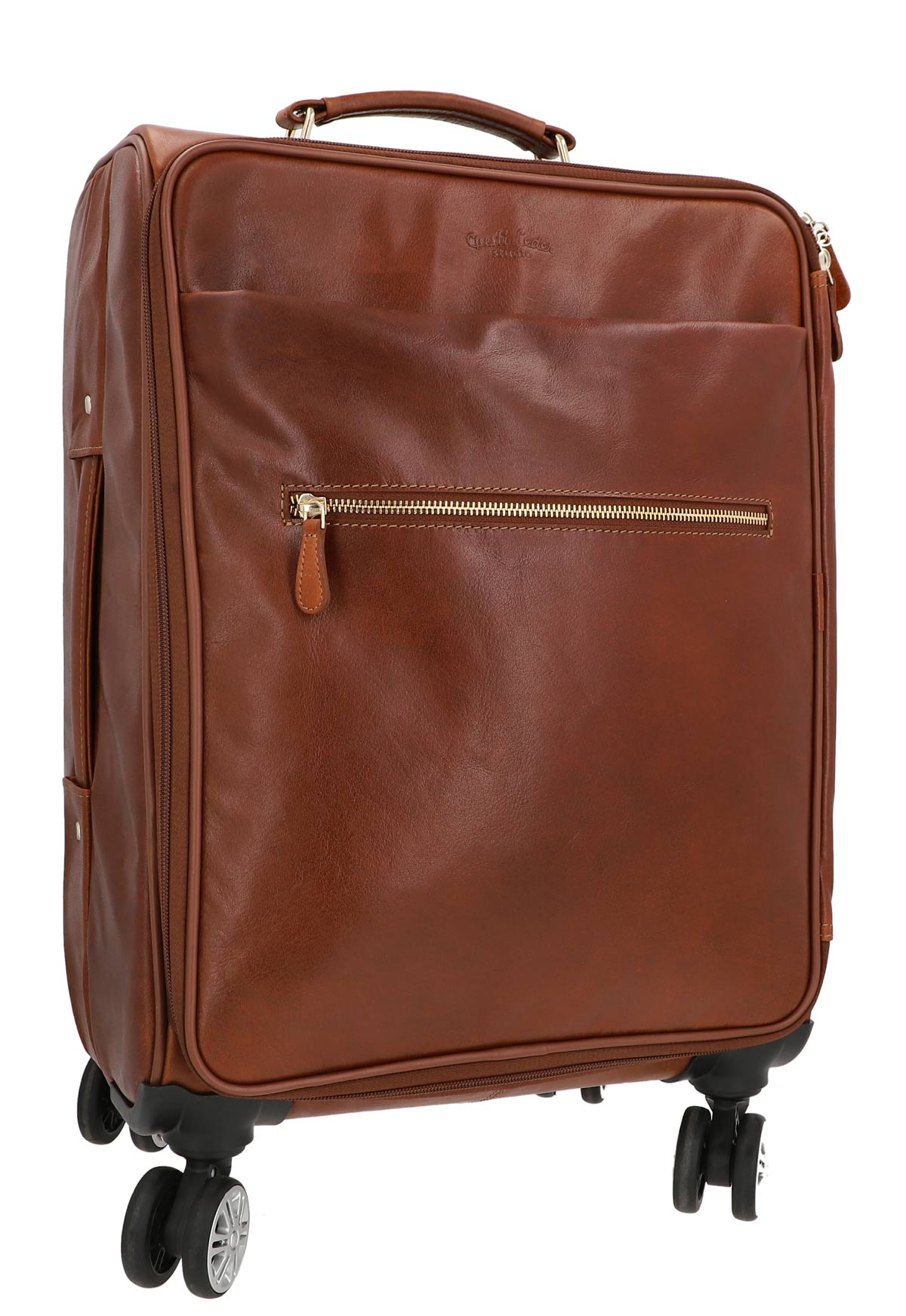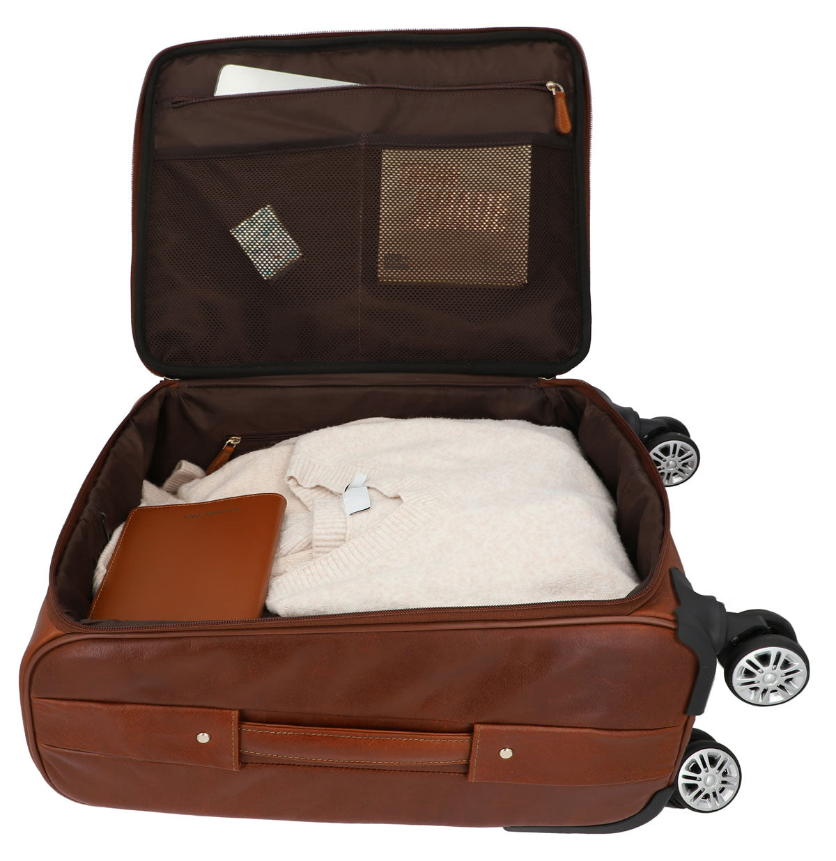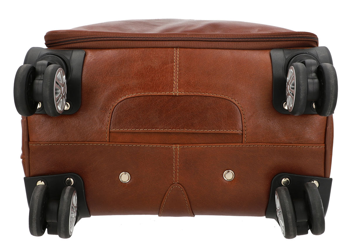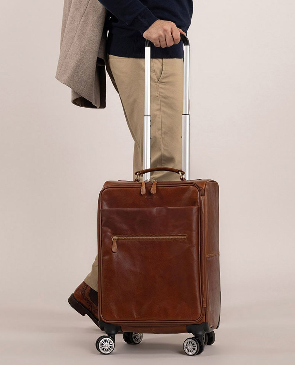 Designed for adventurous travellers to take on business trips, weekend getaways, or extended holidays, our brown leather trolley suitcase has plenty of space for your belongings and will turn heads with its subtlely chic look. It has durable wheels and an extendable handle so that it's easy to transport, even on long-haul trips.