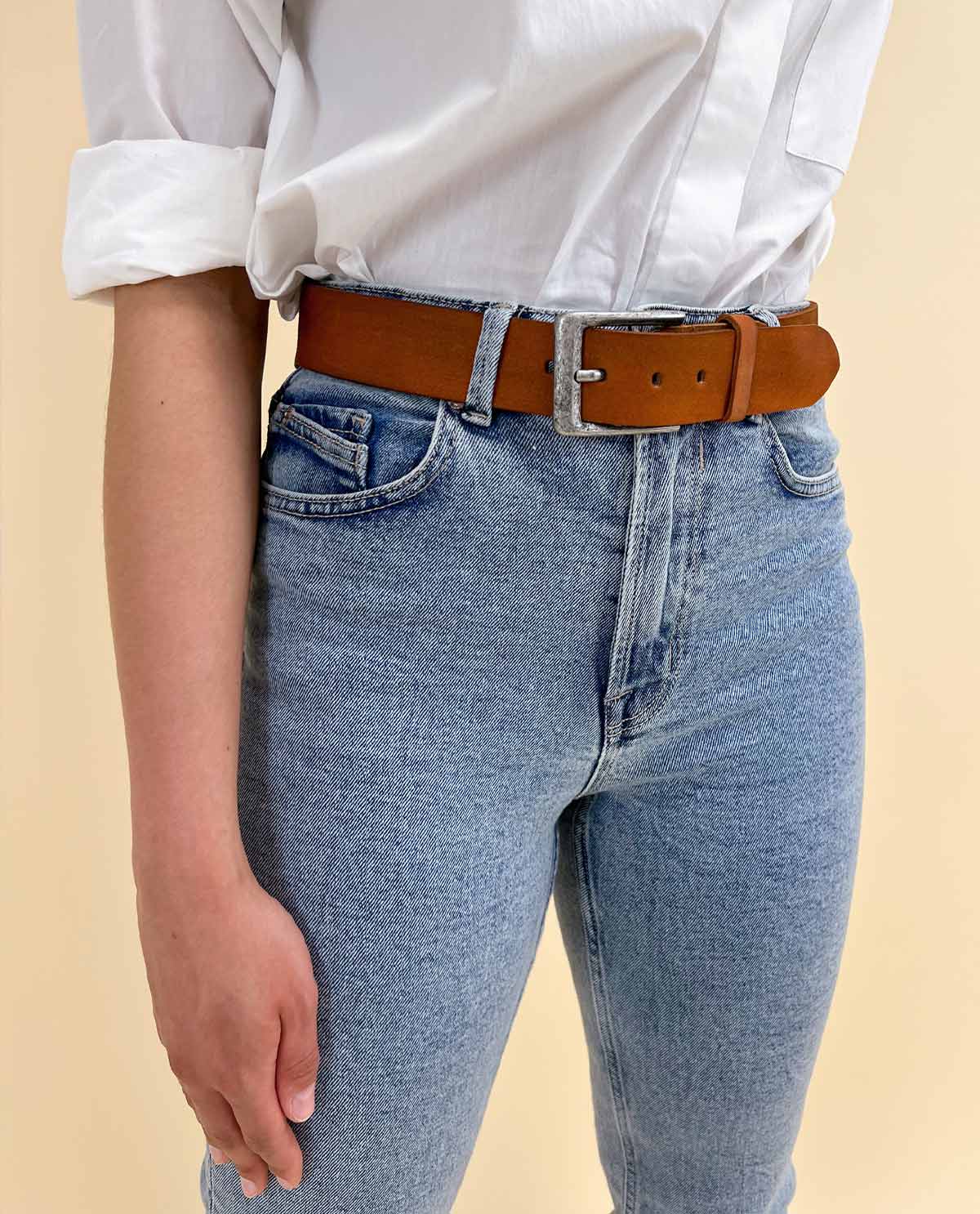 No problem! Your quest for a versatile buffalo leather belt has finally come to an end now you've found “Lane”. It's practical and comfortable, so you can wear it every day with your jeans or use it to add a contrasting touch to your blue suit; “Lane” always looks good. Wear this 3.7 cm belt around your waist or on your hips... It fits comfortably in all the right places and won't catch or squeeze. The statement silver buckle adds a vintage touch to this belt with its used look.