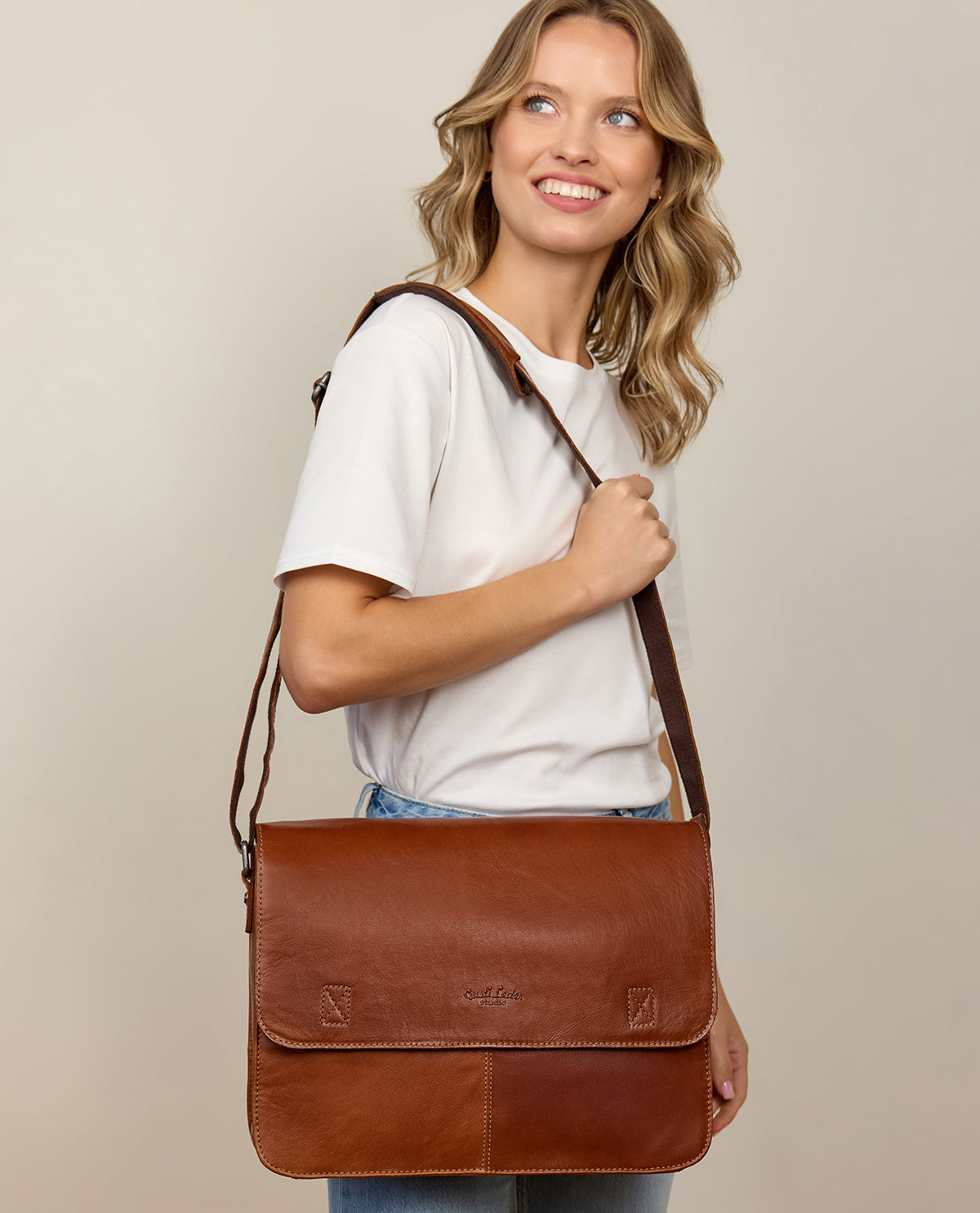 This satchel has a spacious main compartment, there's plenty of space for 15-inch laptops, A4-size notebooks, as well as your books, pencil case, magazines, and more. “Pharell” has two magnets on the front of the bag that make sure everything stays put when you're on the go. The rustic stitching on the front of the bag enhances “Pharell's” natural charming look. All of your things are protected from dust and moisture inside this bag. This stylish satchel also has an additional zipped pocket for your important documents. The adjustable strap can be lengthened or shortened to suit your individual preference. The vegetable-tanned leather is discreet and complements any look.