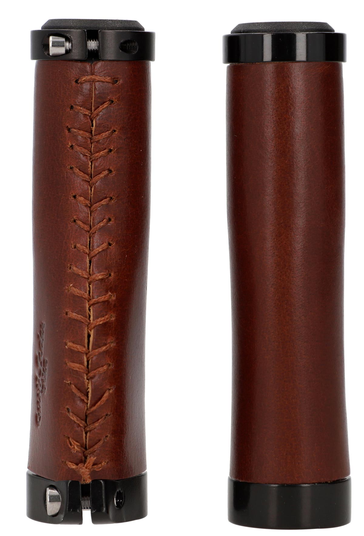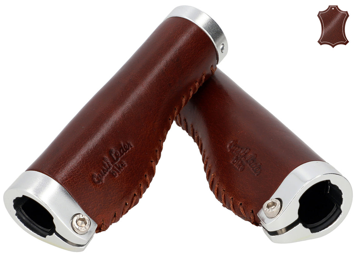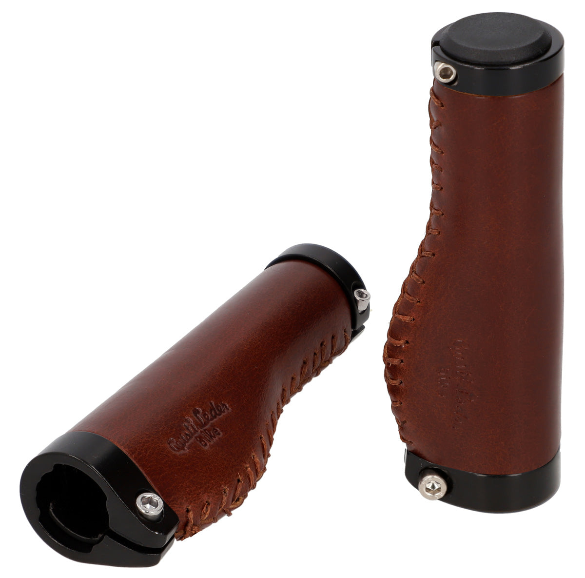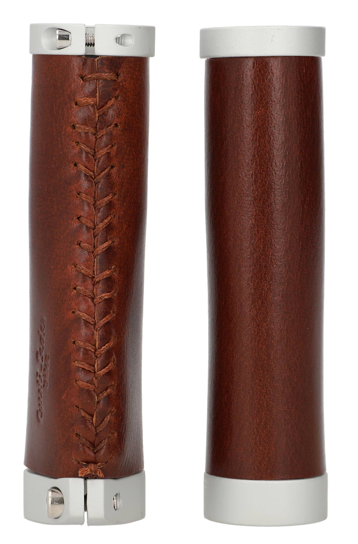 The leather handlebar grips "Phil A." visually match a trendy single-speed bike just as well as a classic Dutch bike and can be easily mounted. Their high-quality material mix of colored aluminum and 100% genuine leather ensures excellent grip and consistently good steering behavior. At the same time, they ideally adapt to the anatomy of your hands, cushion shocks and vibrations, and thus increase the grip security. After a short break-in period, you won't want to miss the noticeable comfort and pleasant feel of these grips.