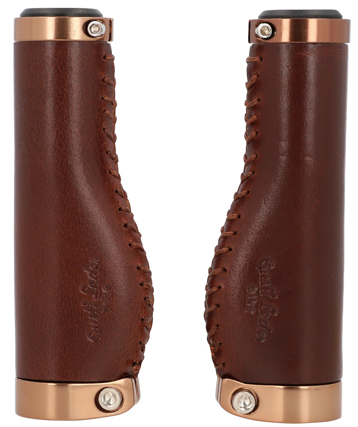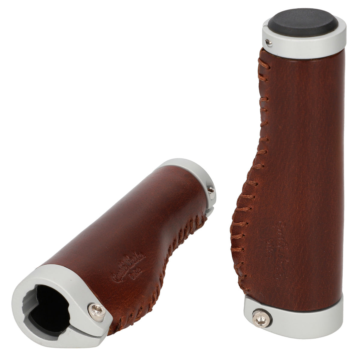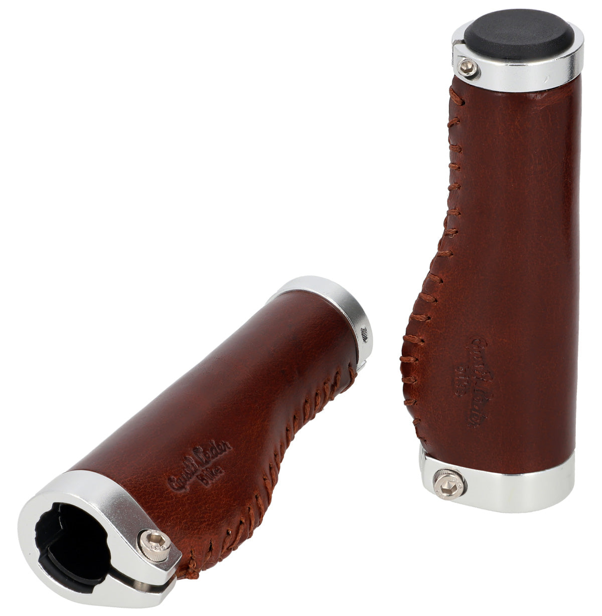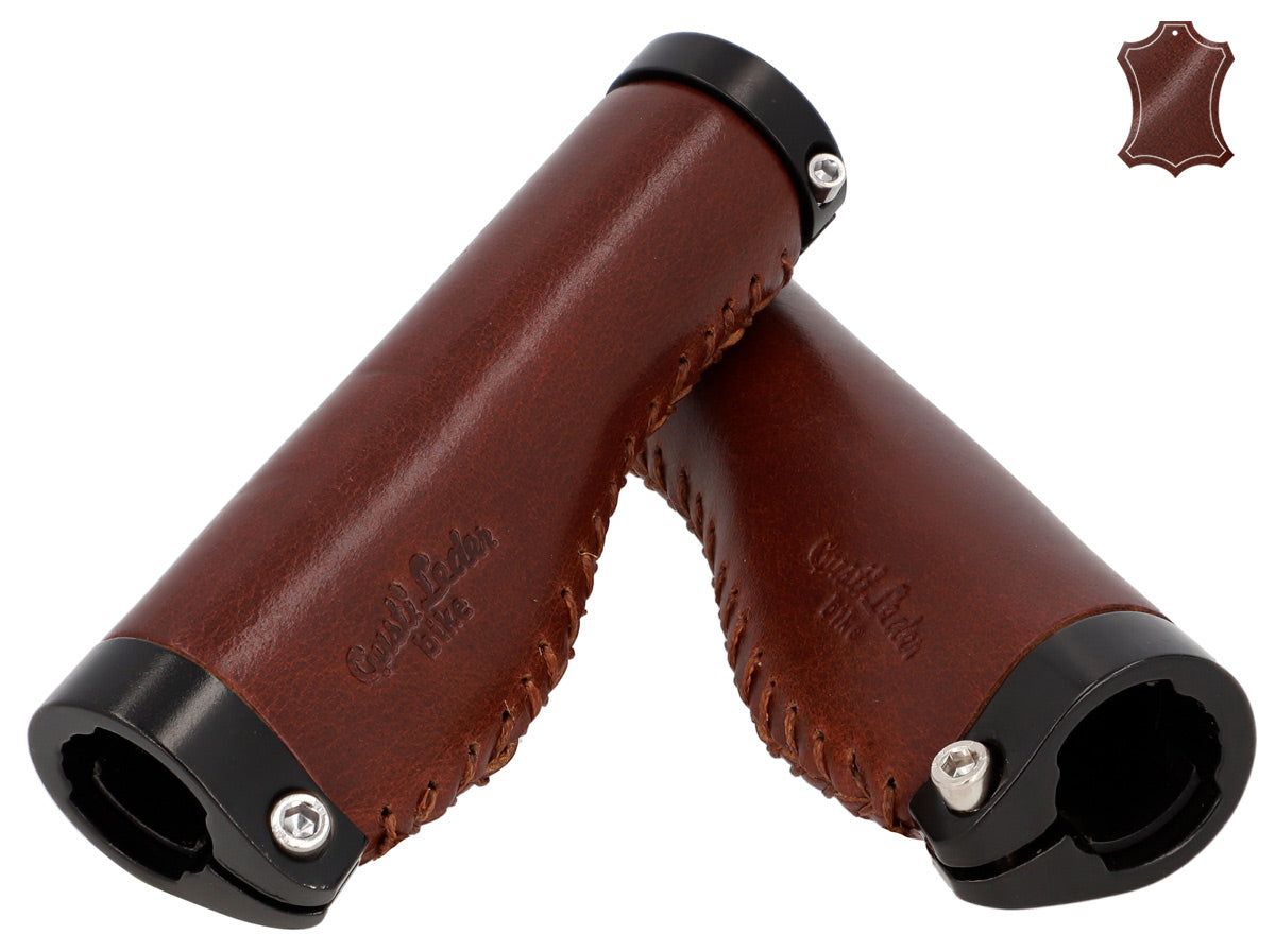 The leather handlebar grips "Phil A." visually match a trendy single-speed bike just as well as a classic Dutch bike and can be easily mounted. Their high-quality material mix of colored aluminum and 100% genuine leather ensures excellent grip and consistently good steering behavior. At the same time, they ideally adapt to the anatomy of your hands, cushion shocks and vibrations, and thus increase the grip security. After a short break-in period, you won't want to miss the noticeable comfort and pleasant feel of these grips.