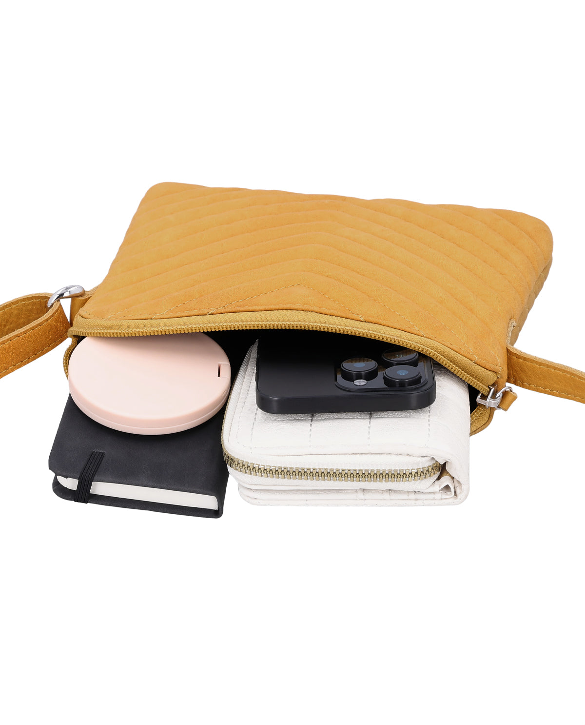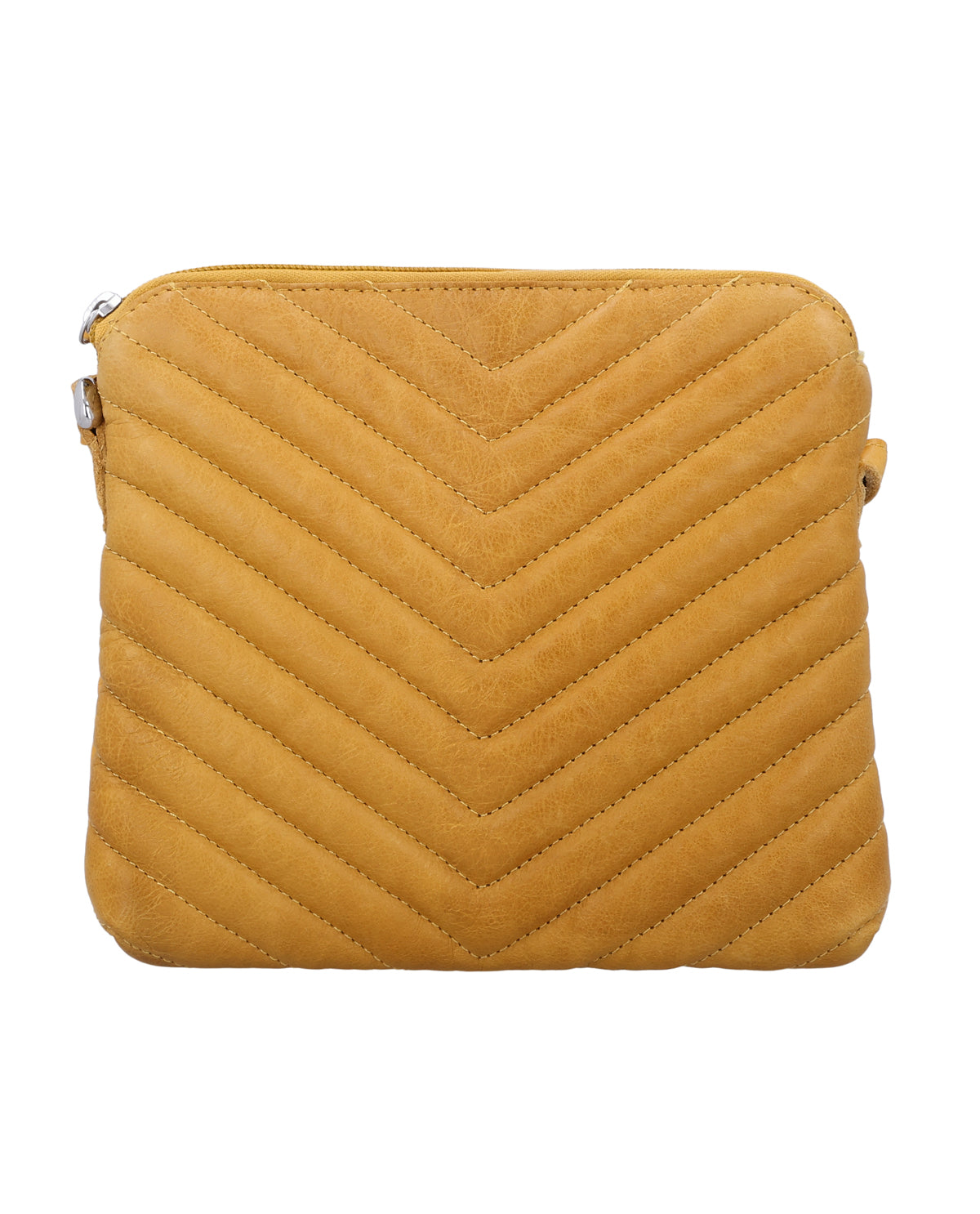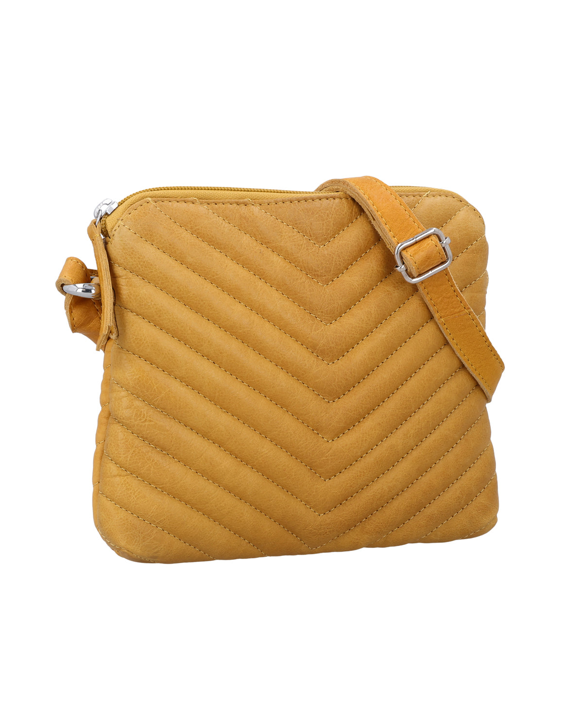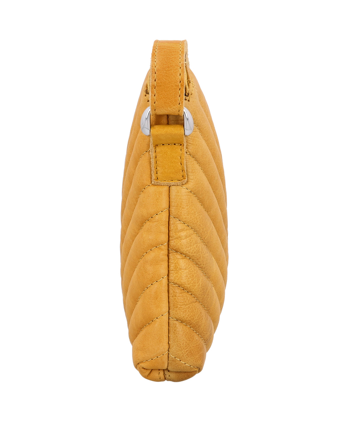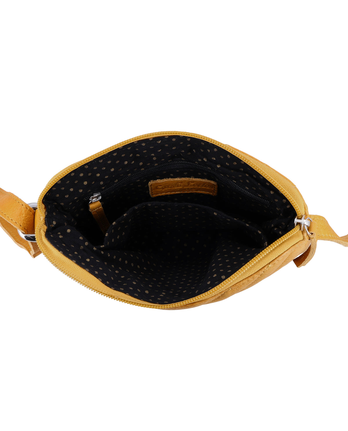 The small "Aline" handbag is a leather handbag for women who want to consciously integrate color and texture into their everyday lives. The yellow leather has a lively effect and, thanks to the striking pattern on the surface, is a real eye-catcher that immediately adds lightness to your outfit. Despite its compact size, "Aline" offers exactly the flexibility you need in everyday life thanks to its zippered main compartment and adjustable shoulder strap. This leather shoulder bag accompanies you through the day in a relaxed manner, making a clear, positive style statement.