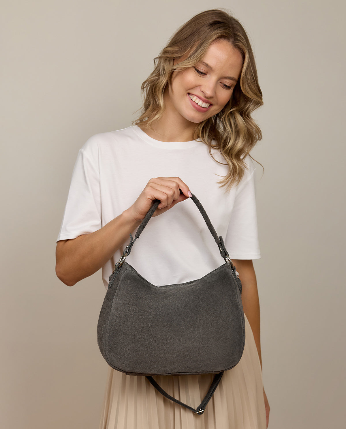 The "Marcella" handbag is the perfect companion for modern everyday life. With its elegant design made from high-quality leather and a long, adjustable shoulder strap that can be removed, it combines both style and flexibility. You can carry it either as a crossbody bag or with the additional short strap – depending on your preference. Whether for a city stroll, a business meeting, or an evening with friends, "Marcella" complements your outfit with a special touch and ensures you are always well-organized.