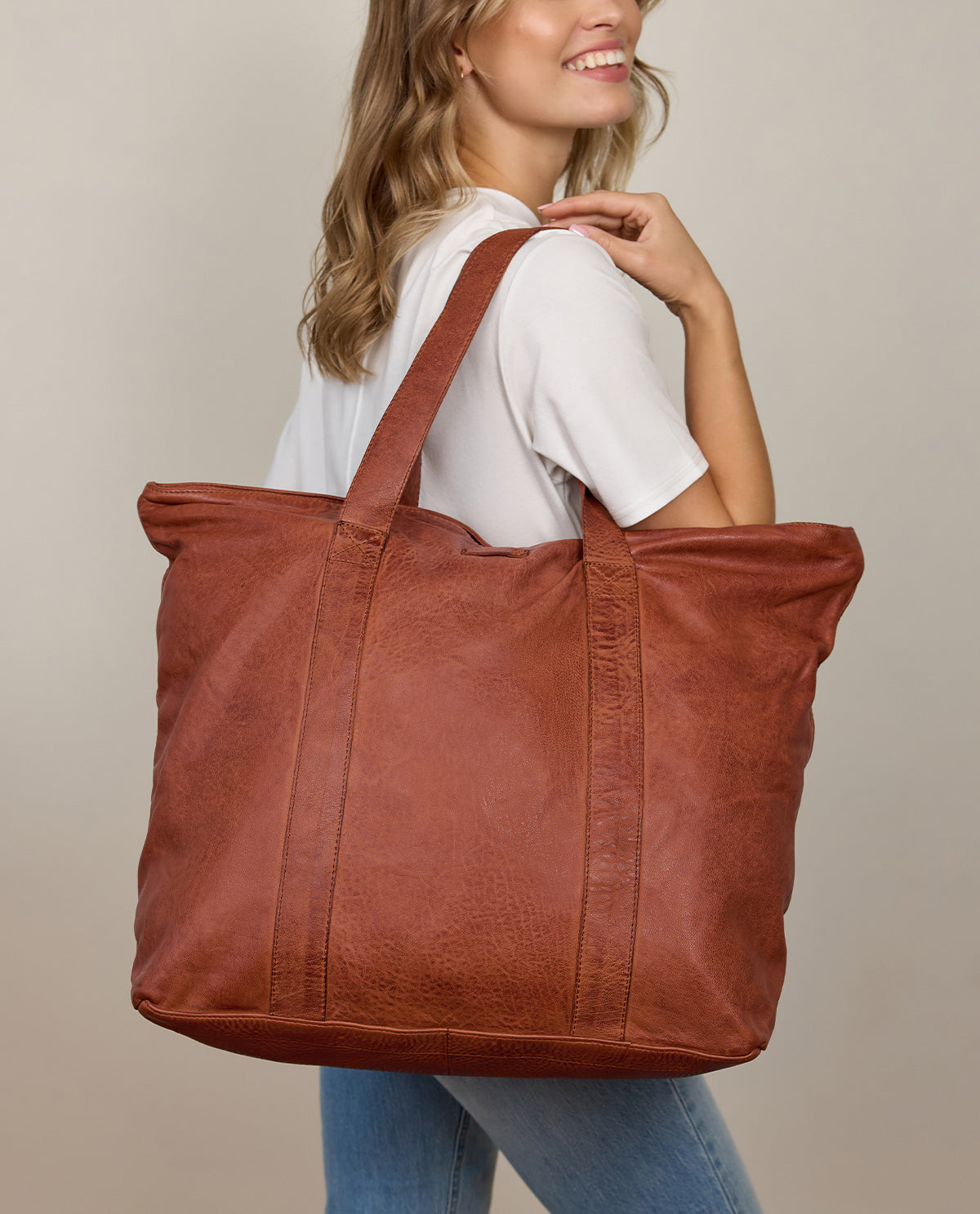 Whether for everyday use or your next outing – with “Alexis,” you have a versatile handbag that perfectly combines functionality and style. Made from high-quality brown leather, it impresses with its elegant design and durable craftsmanship. Thanks to the thoughtful interior, it offers enough space for your essentials, while the practical zipper ensures that your valuables are secure from prying hands. Whether as a beach bag for relaxing days by the sea or as a stylish companion for everyday use – “Alexis” is the perfect choice for women and men who value both security and aesthetics.