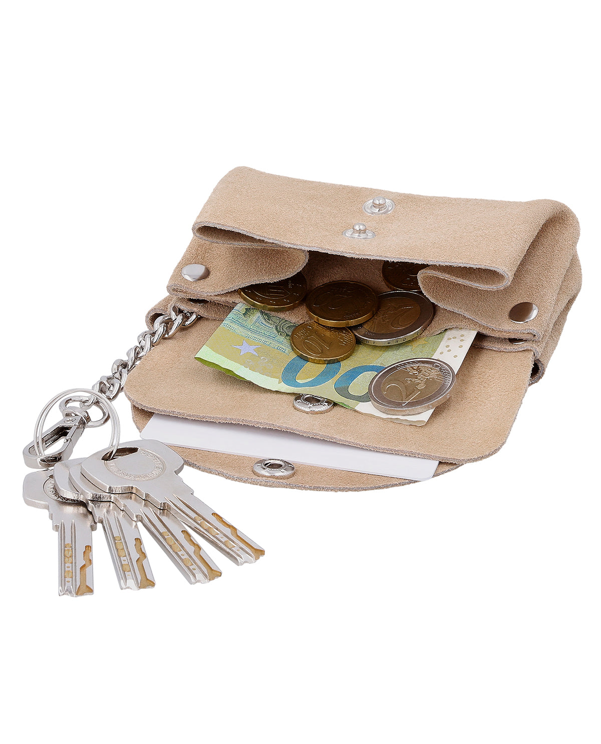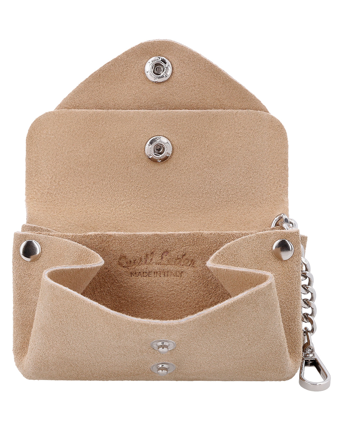 Key pouch wallet coin purse key case women light grey leather - Made in Italy