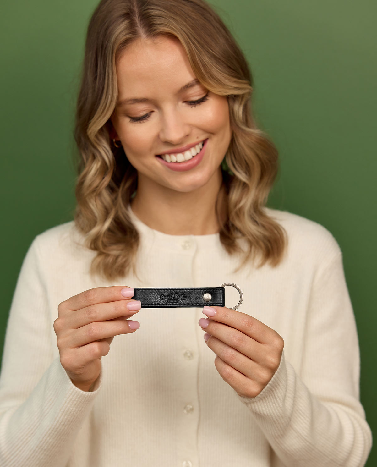 "Domenico" is an elegant key ring made of high-quality leather that adds a touch of style to your everyday life. Its slim, modern design makes it a timeless companion that can be easily attached to your keys, bags, or backpacks. The soft leather feels pleasant in the hand and gives the key ring a particularly elegant feel – perfect for anyone who values high-quality details.