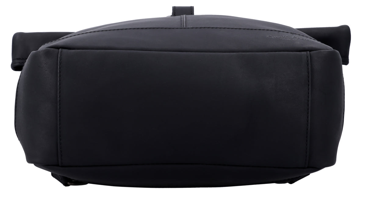 Whether for school, university, or work – our "Bendik" roll-top backpack always fits. Because it impresses with its flexibility, high wearing comfort, and generous space. This classic, robust daypack made of black leather stands out especially with its trendy roll-top – a look you just can't miss at the moment.