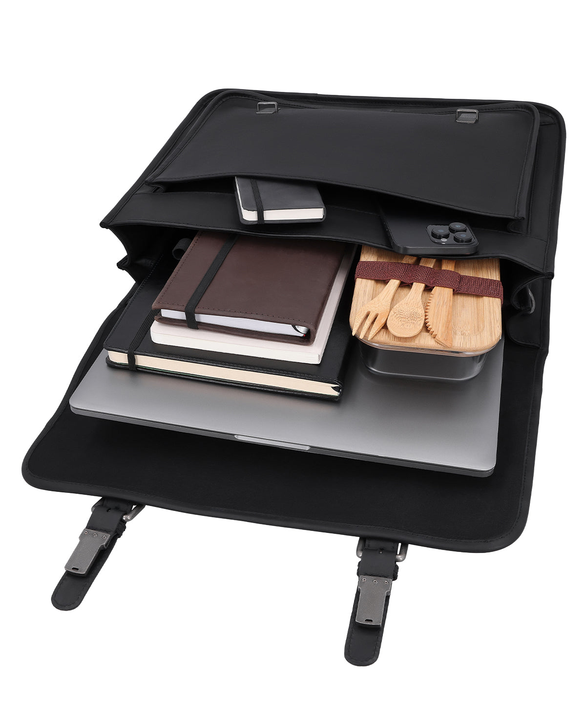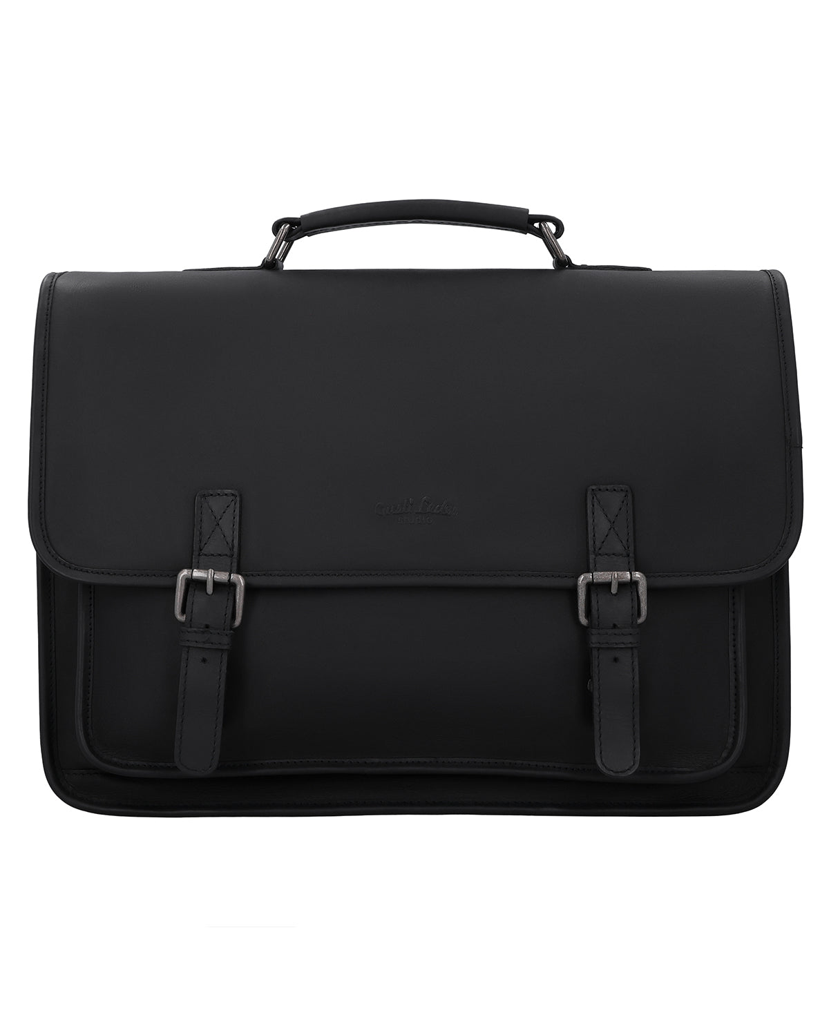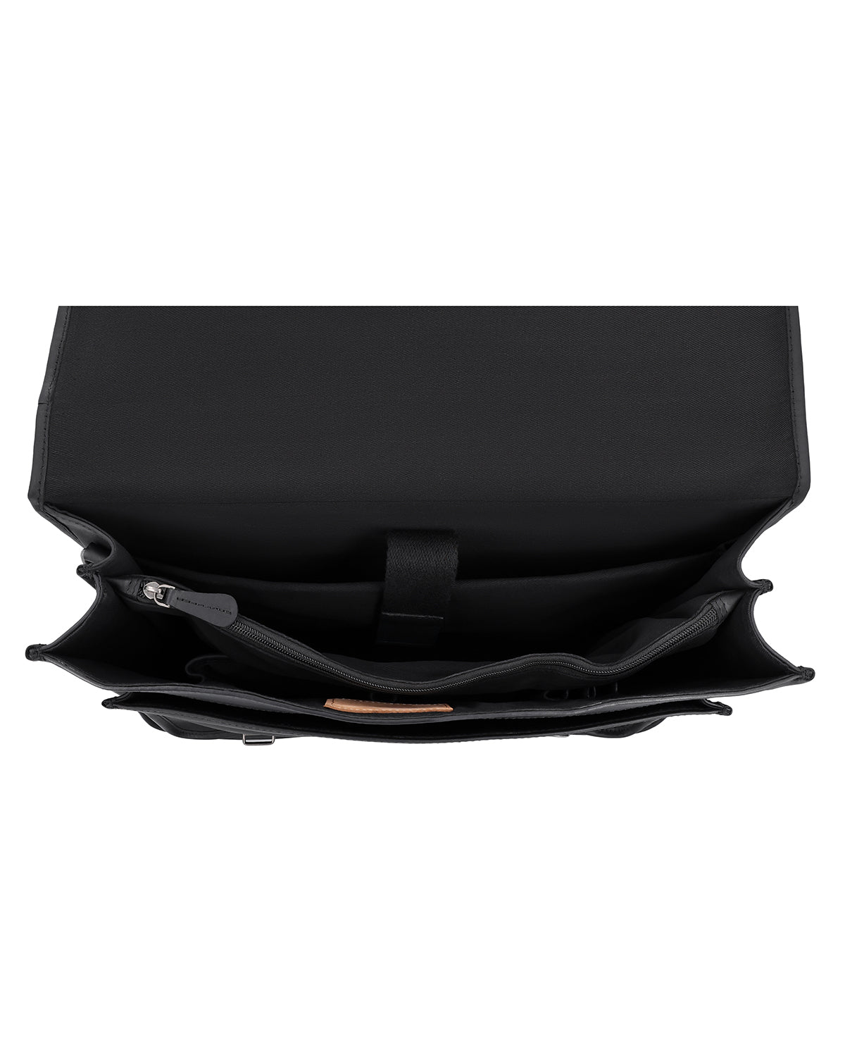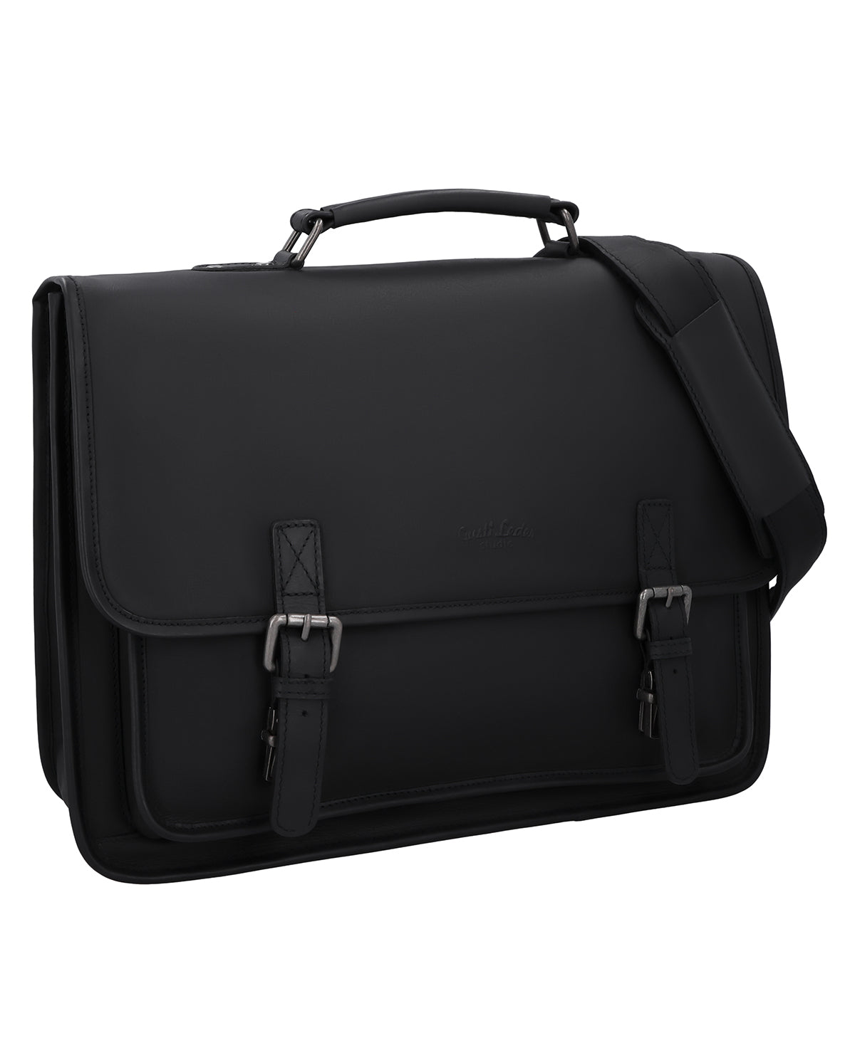 The Elmar briefcase is a leather business bag for men and women who want to keep their working day clearly organized and flexible at the same time. In classic black, it has a calm, professional, and timeless look. Two carrying options – thanks to an additional shoulder strap – allow you to carry "Elmar" elegantly in your hand or comfortably over your shoulder, depending on the situation. An integrated laptop compartment reliably protects your work device and makes this leather bag the ideal companion for the office, appointments, or business trips.