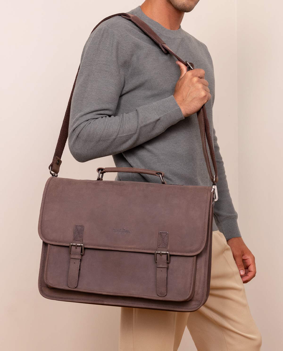 Without a doubt, "Elmar" has everything you expect from a leather shoulder bag: the classic look combined with a subtle finish – depending on the color, in a trendy used look or in timeless elegant smooth leather. This makes "Elmar" equally suitable for a casual workday as well as for the upcoming big business meeting. And for those who are still not convinced by "Elmar", this classic briefcase made of high-quality processed leather will impress at the latest with its enormous and generous space thanks to the numerous compartments.