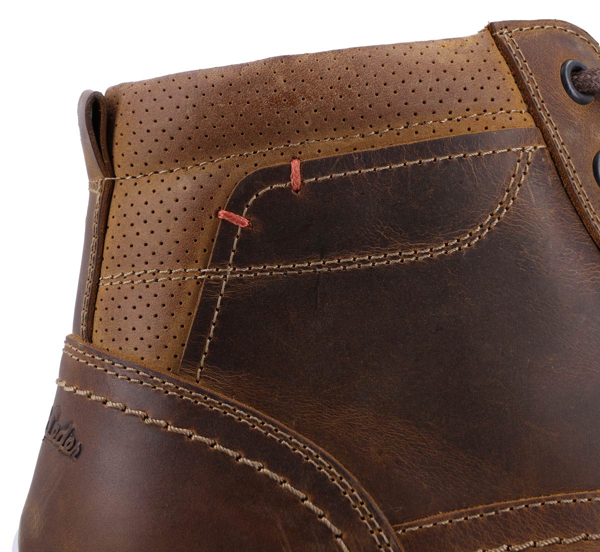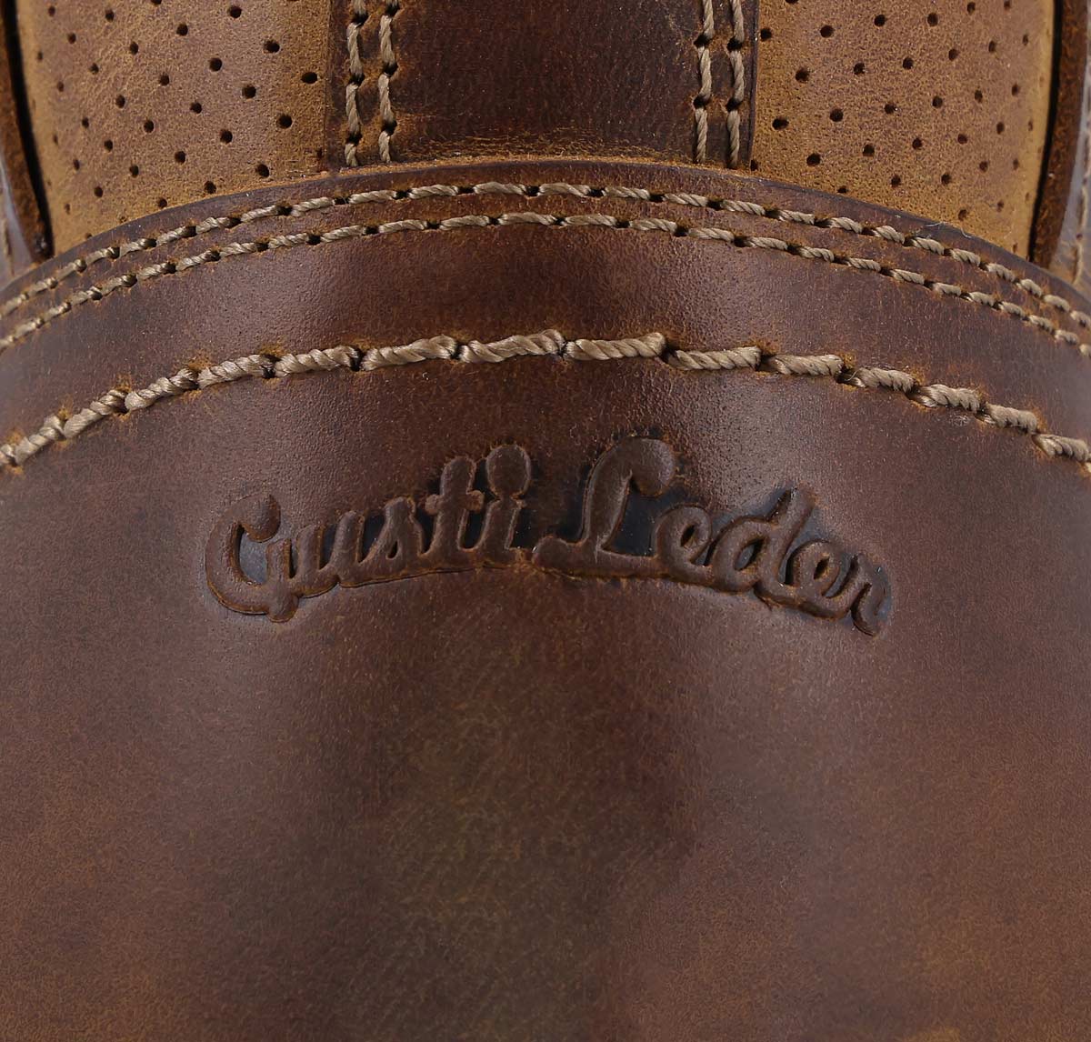 Inside, "Oberon" impresses with a checked textile lining and a combination of leather and fabric inserts that guarantee breathability and wearing comfort. The insole made of cowhide leather offers a pleasant walking experience, while the sole made of polyurethane combines flexibility and stability – ideal for long days on your feet. An embossed Gusti Leather logo on the heel emphasizes the high-quality craftsmanship and timeless style. With "Oberon", you enjoy a shoe that perfectly harmonizes elegance, comfort, and artisanal quality – for the modern man with a sense of style.