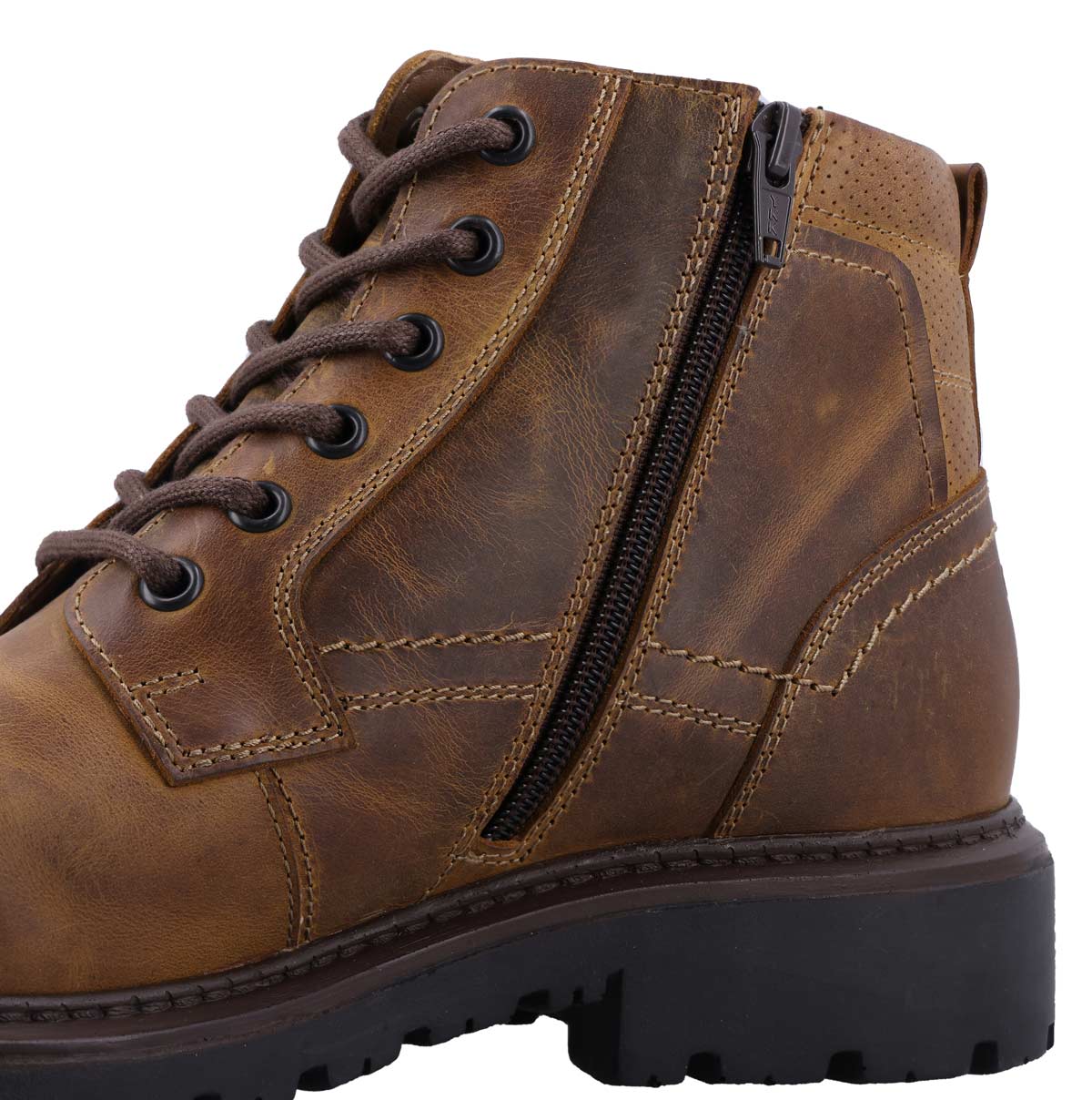 With "Oberon", you choose a pair of leather shoes that combines classic elegance with modern sophistication. Made from high-quality cowhide leather, these shoes impress with their smooth texture, durability, and elegant shine that suits any occasion. The classic lace-up design with eyelets allows for a personalized fit, while the side zipper enables quick on and off – a practical detail that combines comfort and functionality. The fine orange stitching at the ankle provides a stylish accent that subtly enhances the simple design.