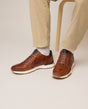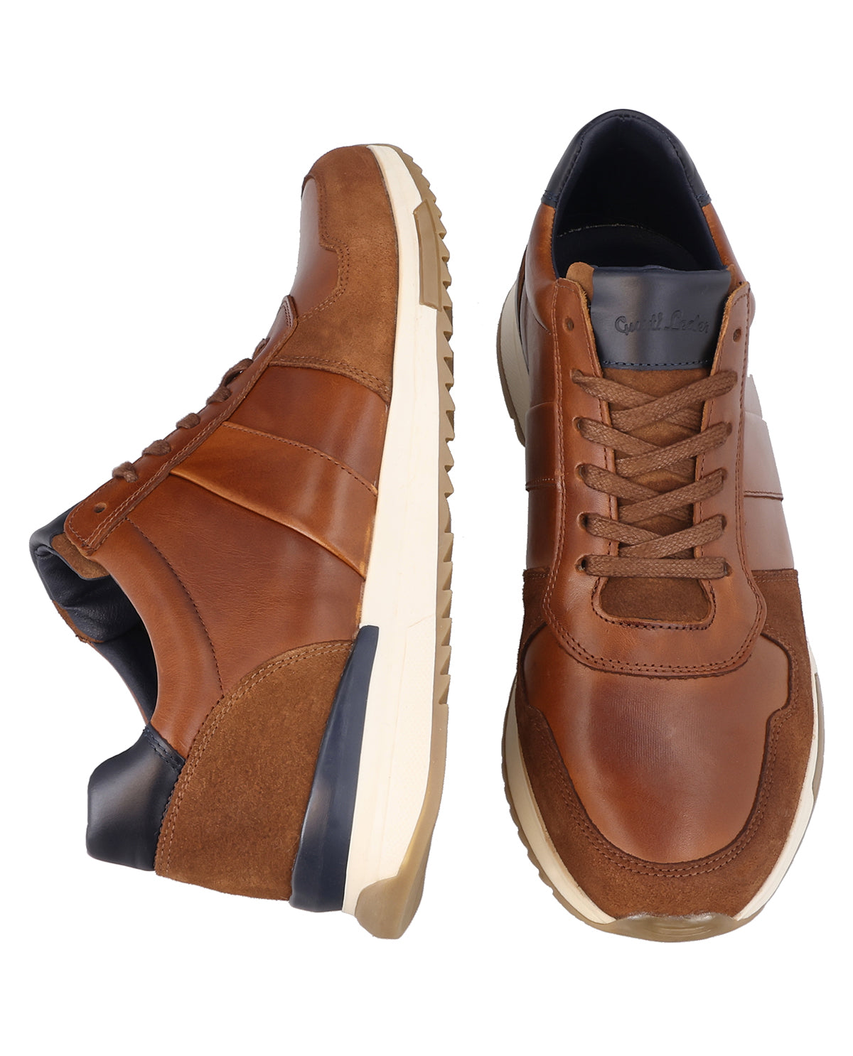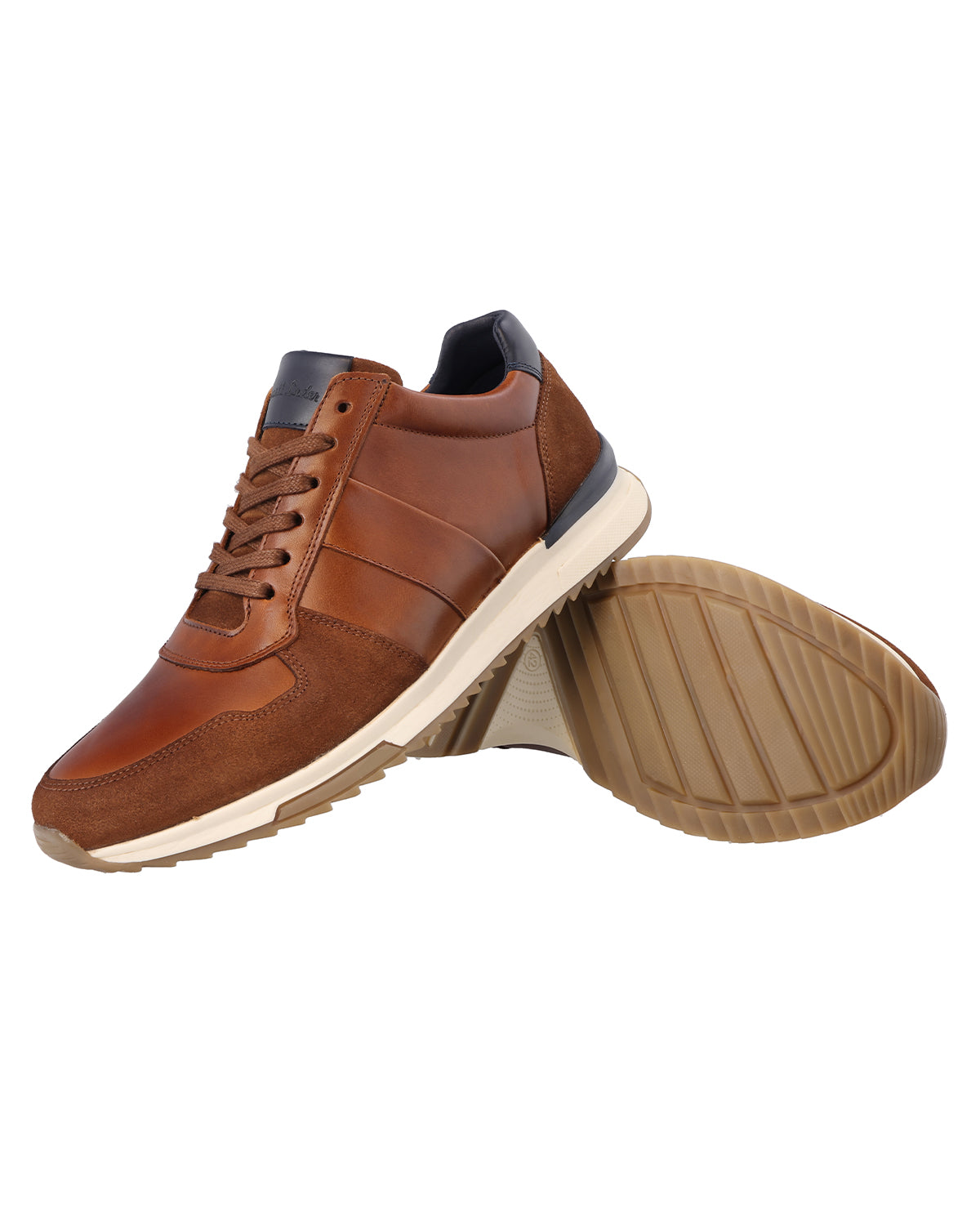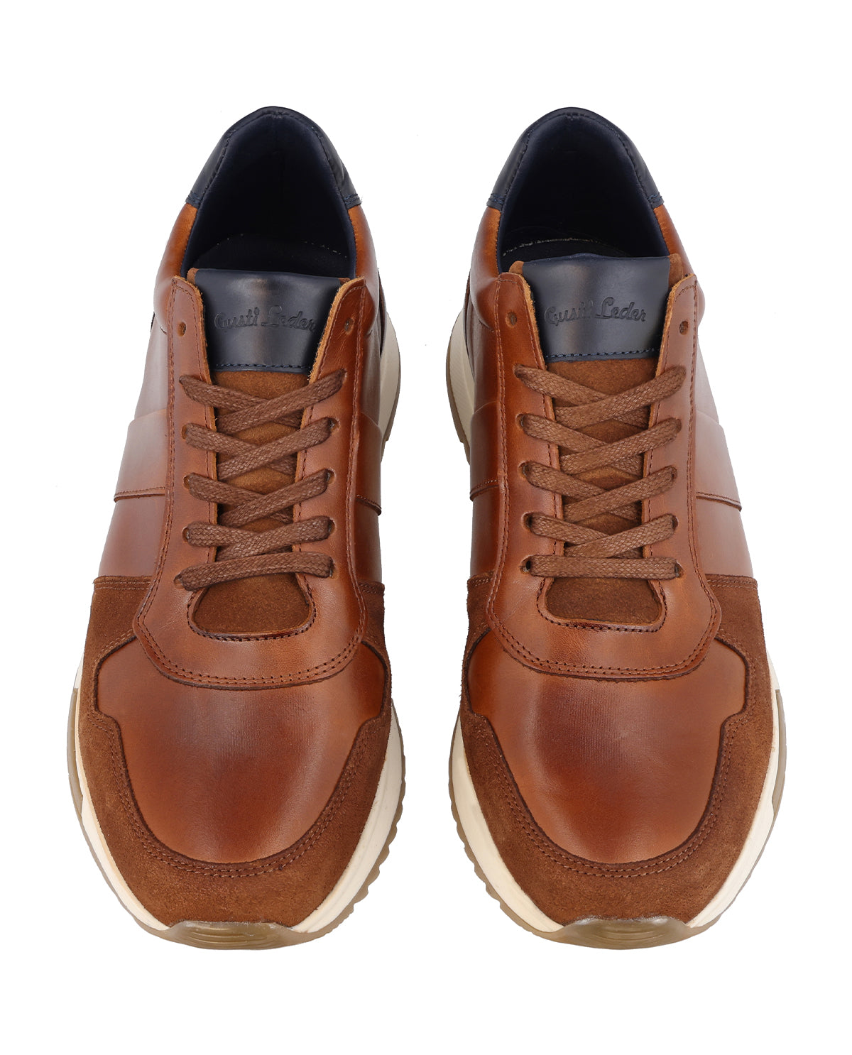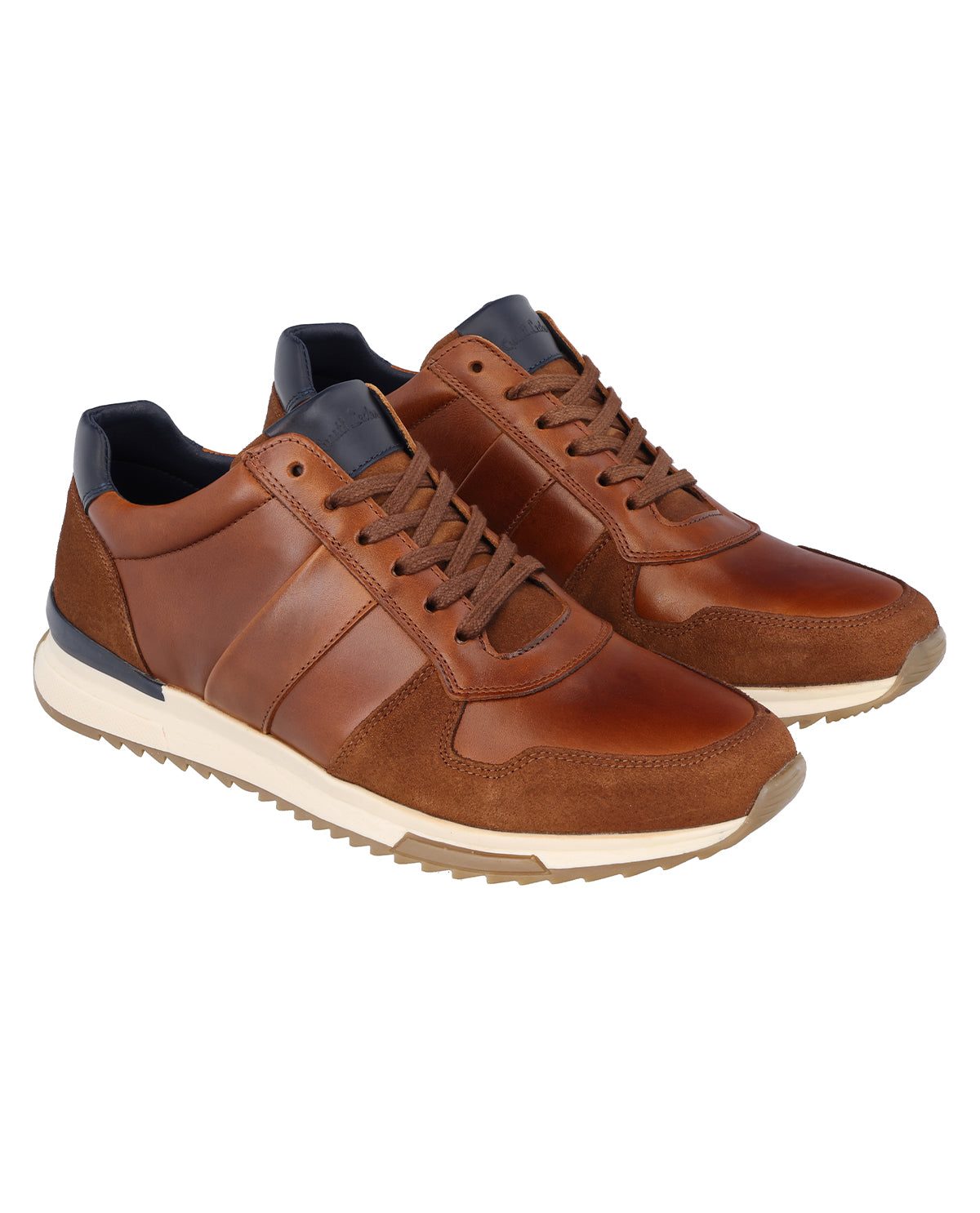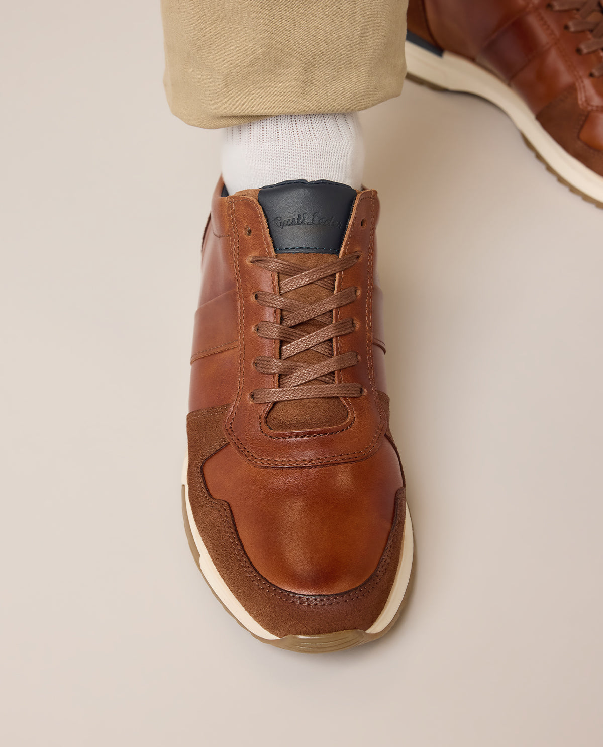 With "Ennio", you wear shoes that effortlessly bridge the gap between casual everyday life and a stylish appearance. The thoughtful design combines smooth leather with velvety suede elements, creating a sophisticated, modern look. The multi-part construction with visible seams emphasizes the craftsmanship and simultaneously guarantees durability. The rounded toe cap with a double leather layer of smooth leather and suede provides stability and visual depth, while the flat, wide cotton laces in brown add a stylish accent. The leather cover on the tongue with an embossed logo gives "Ennio" a high-quality finish.