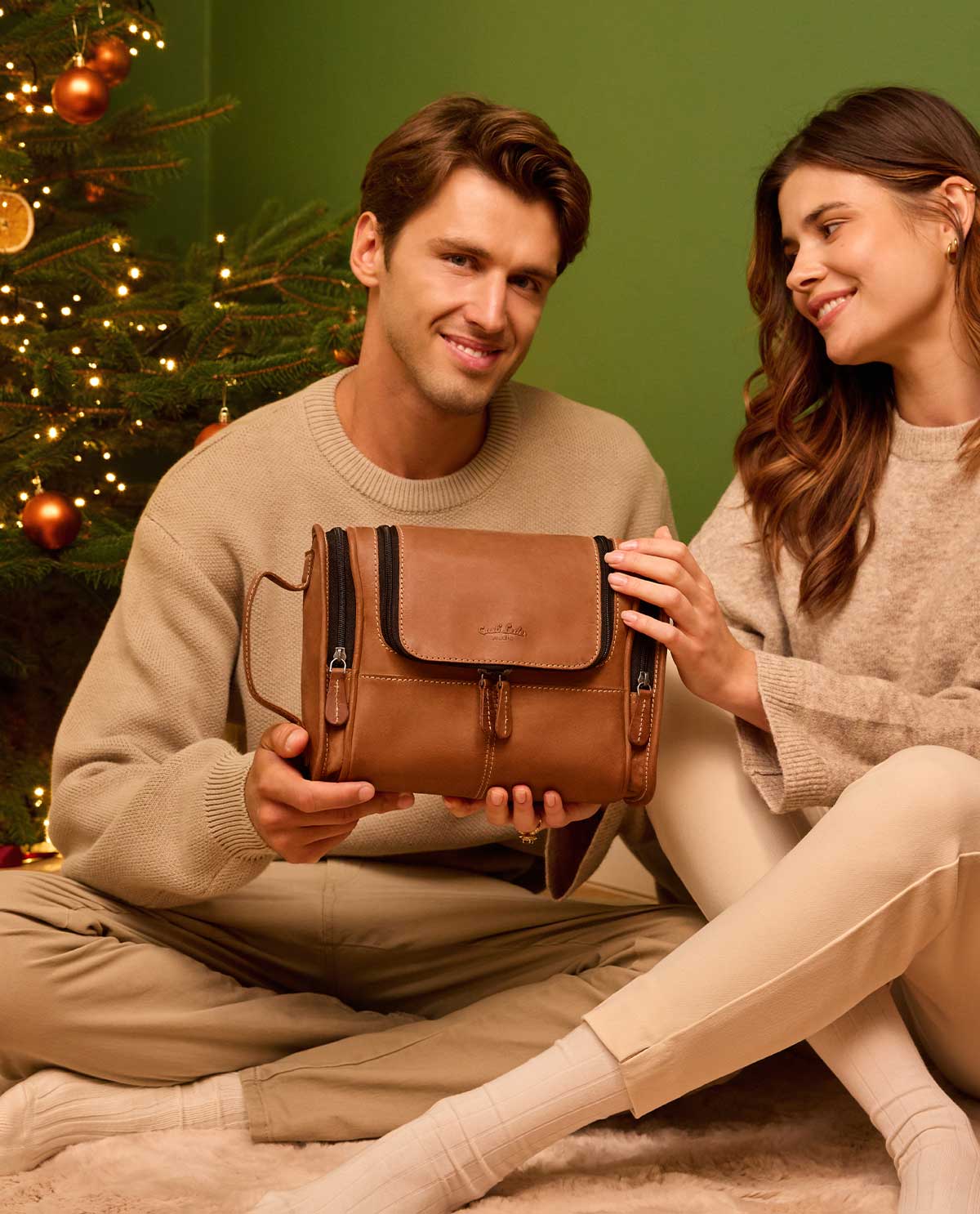If you were a little elf, you could play hide and seek in this wash bag perfectly. "Chester" offers incredibly many options to store all your hygiene products neatly. Besides its versatile pockets, "Chester" also impresses with practical details: Everything is well stored in the two side pockets, and thanks to the practical hook, you can safely hang the bag in any bathroom in the world. The water-repellent interior also forgives small shampoo mishaps. Inspired by the urban Berlin metropolitan flair, this toiletry bag combines functionality with a stylish look. You have the choice between elegant dark brown and modern light brown – what more could you want? With "Chester," you are always well-equipped when traveling.