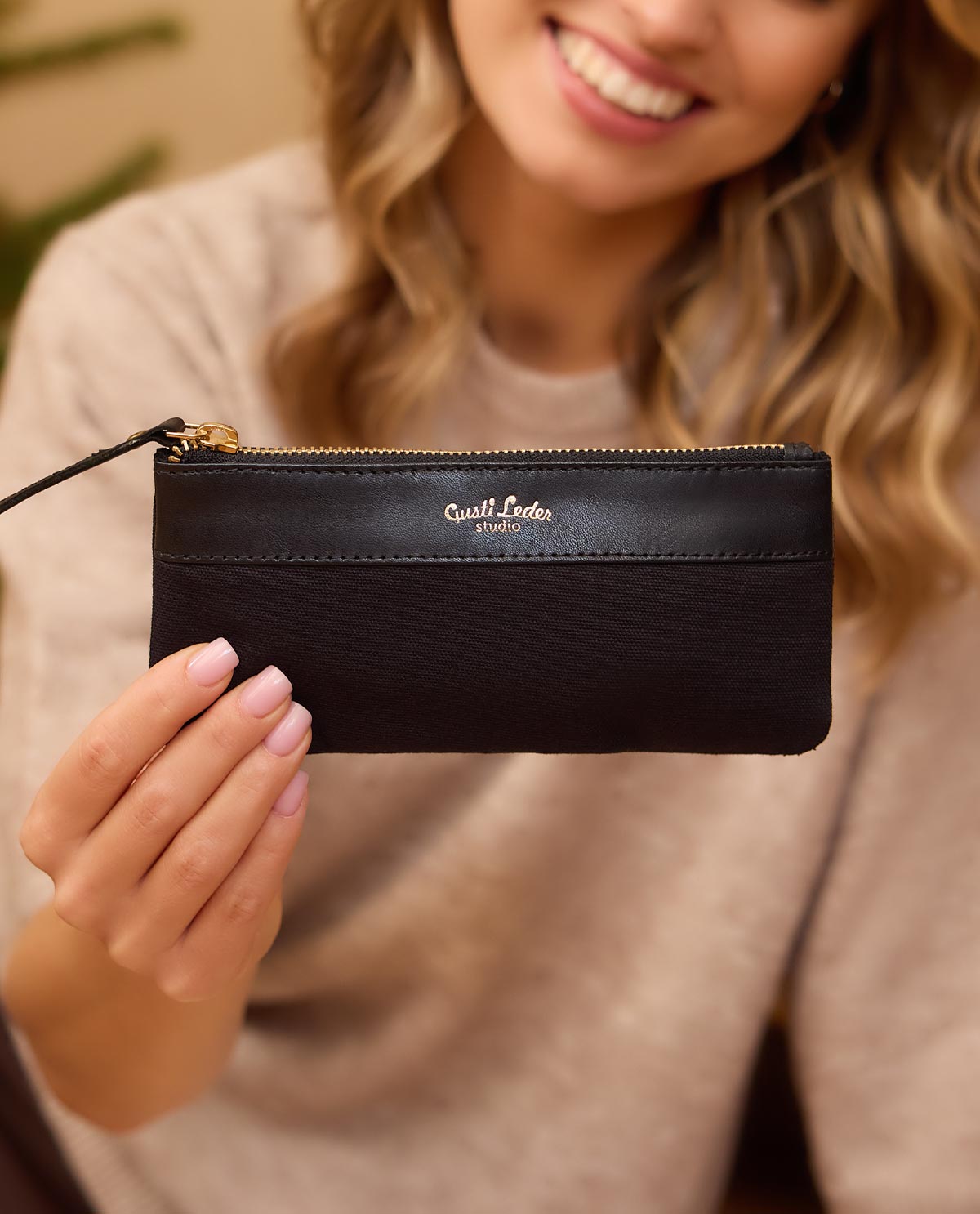 Its thoughtful design provides plenty of space for your makeup, skincare products, and small accessories, while the high-quality leather means this toiletry bag is sophisticated and sturdy. Thanks to its compact size, "Everly" easily fits into your bag or hand luggage.
