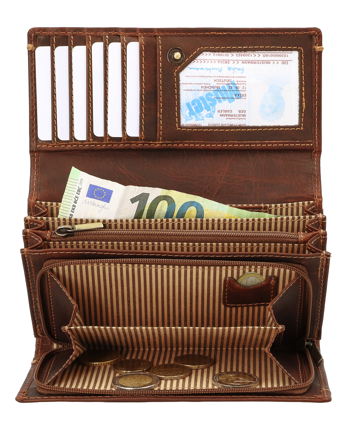 Discover our high-quality women's wallet "Angelique" made of brown leather – an elegant companion that perfectly combines design and functionality. Inspired by the urban Berlin flair, it is ideal for your everyday life, whether shopping in the city, at the café, or traveling. The genuine, durable leather ensures a noble look and a pleasant feel that becomes even more beautiful over time. "Angelique" stands for style, quality, and organization – everything you expect from a modern wallet.