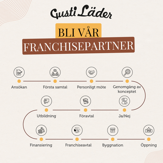 Bli franchisetagare och dra nytta av en beprövad affärsmodell, omfattande stöd, låg risk och snabba inträdesmöjligheter på en etablerad marknad. Högkvalitativa lädervaror och en transparent produktion är våra största styrkor som gör oss till det första valet för våra kunder.