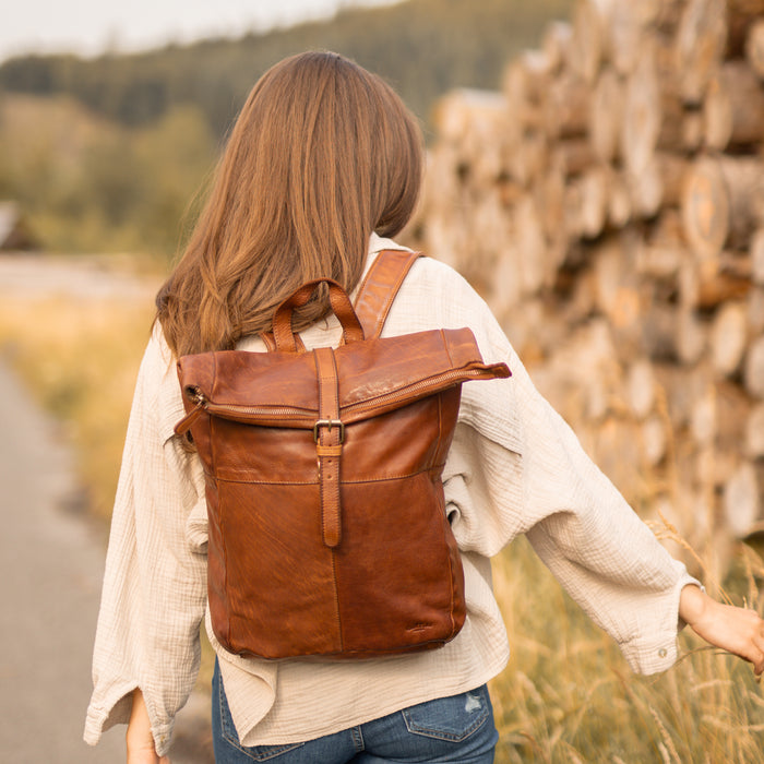Vi har lagt särskild vikt vid form och design när vi skapade vår klassiska rulltoppsryggsäck "Henning". Denna ryggsäck erbjuder gott om plats för allt du behöver under en hektisk dag på kontoret eller universitetet. Den har ett rymligt huvudfack med extra fack och innerfickor med blixtlås där du kan förvara dina saker lättillgängligt. Vår genomtänkt designade vintage-ryggsäck är ett otroligt accessoar som passar din stil.