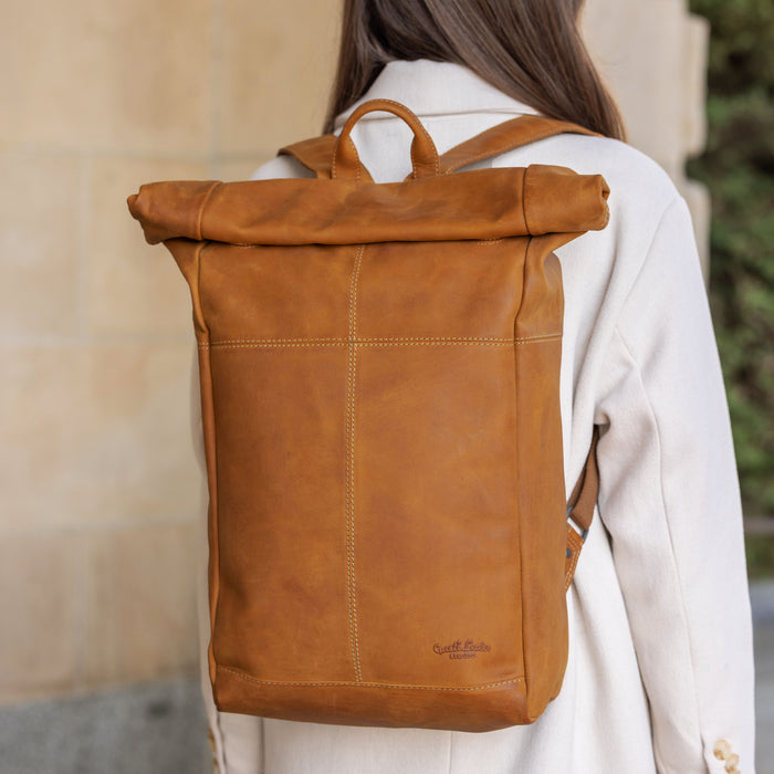 "Roven" är en rolltop-modell gjord av vegetabiliskt garvat getläder, med justerbart metallspänne och en påsydd extraficka på framsidan. Med en kapacitet på 11 L finns det gott om plats för dokument, några snacks och en stor vattenflaska. Det insydda märket ger dig dessutom möjligheten att utrusta din ryggsäck med en personlig gravyr.