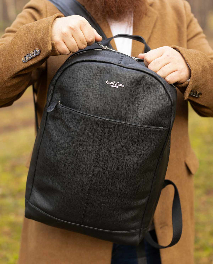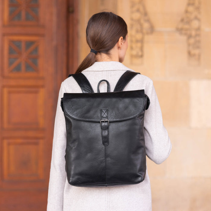 Titta på "Larisa", en tidlös, klassisk väska med många moderna funktioner. Vår kompakta läderryggsäck är stilren och funktionell. Denna klassiska svarta ryggsäck kanske ser liten ut, men erbjuder gott om plats för att säkert förvara dina viktigaste saker. Du kan ta med detta vackra lädertillbehör till kontoret eller bära det när du utforskar staden.