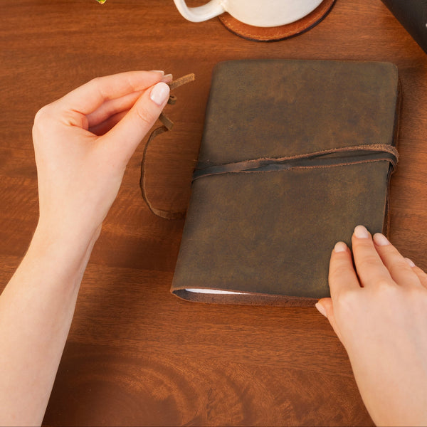 Shoppa vårt vintage journal- och pennfodral! Våra produktuppsättningar är en fantastisk present till dina nära och kära som tycker om att skriva ner sina semesterhöjdpunkter. Vi har ett mångsidigt urval av pennfodral och anteckningsböcker som kan passa dina behov och användas för att organisera dina planer för veckan, månaden och året. Våra läderpapper finns i olika storlekar och eleganta mönster som du kan välja mellan.