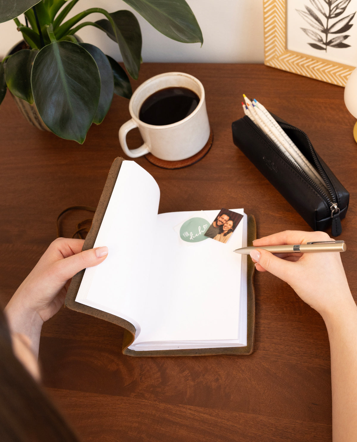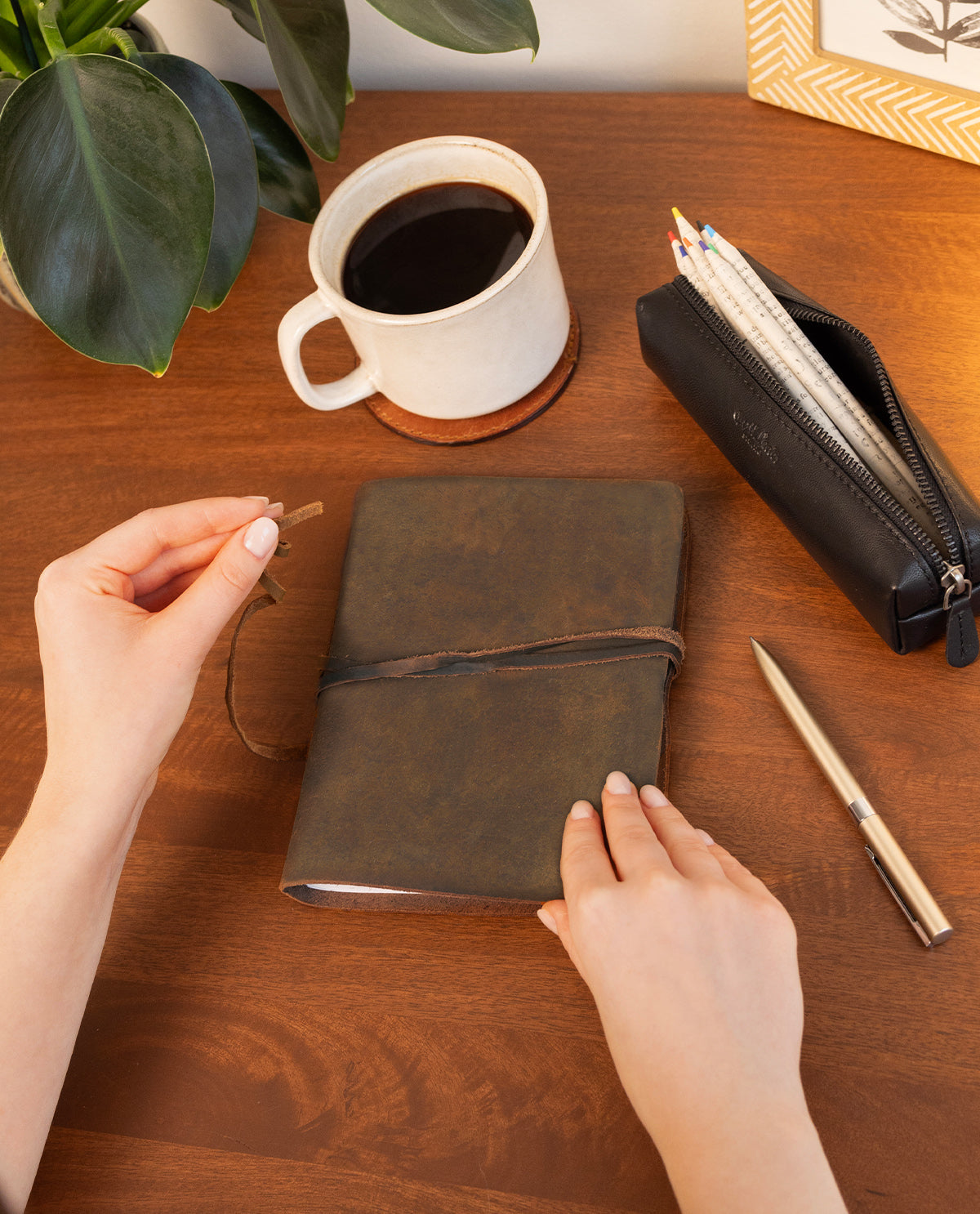 Anteckningsboken "Noel" kombinerar tidlös elegans med praktisk funktionalitet. Tillverkad av högkvalitativt läder imponerar den med sin lyxiga yta och fina hantverk. Denna anteckningsbok är inte bara ett elegant tillbehör utan också den perfekta följeslagaren för dina kreativa, affärsmässiga och personliga anteckningar.