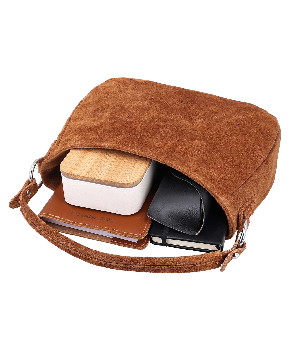 "Marcella" erbjuder inte bara stil, utan också praktiskt förvaringsutrymme för alla dina nödvändigheter. Den har en dragkedjeficka på baksidan som ger dig snabb tillgång till viktiga saker, samt en innerficka för extra säkerhet. Den integrerade läderlappen på insidan ger en personlig touch och kompletterar den högkvalitativa designen perfekt. Oavsett om det är för vardagen, arbetet eller en kväll ute – med "Marcella" har du alltid allt viktigt nära till hands och i stilfull design.