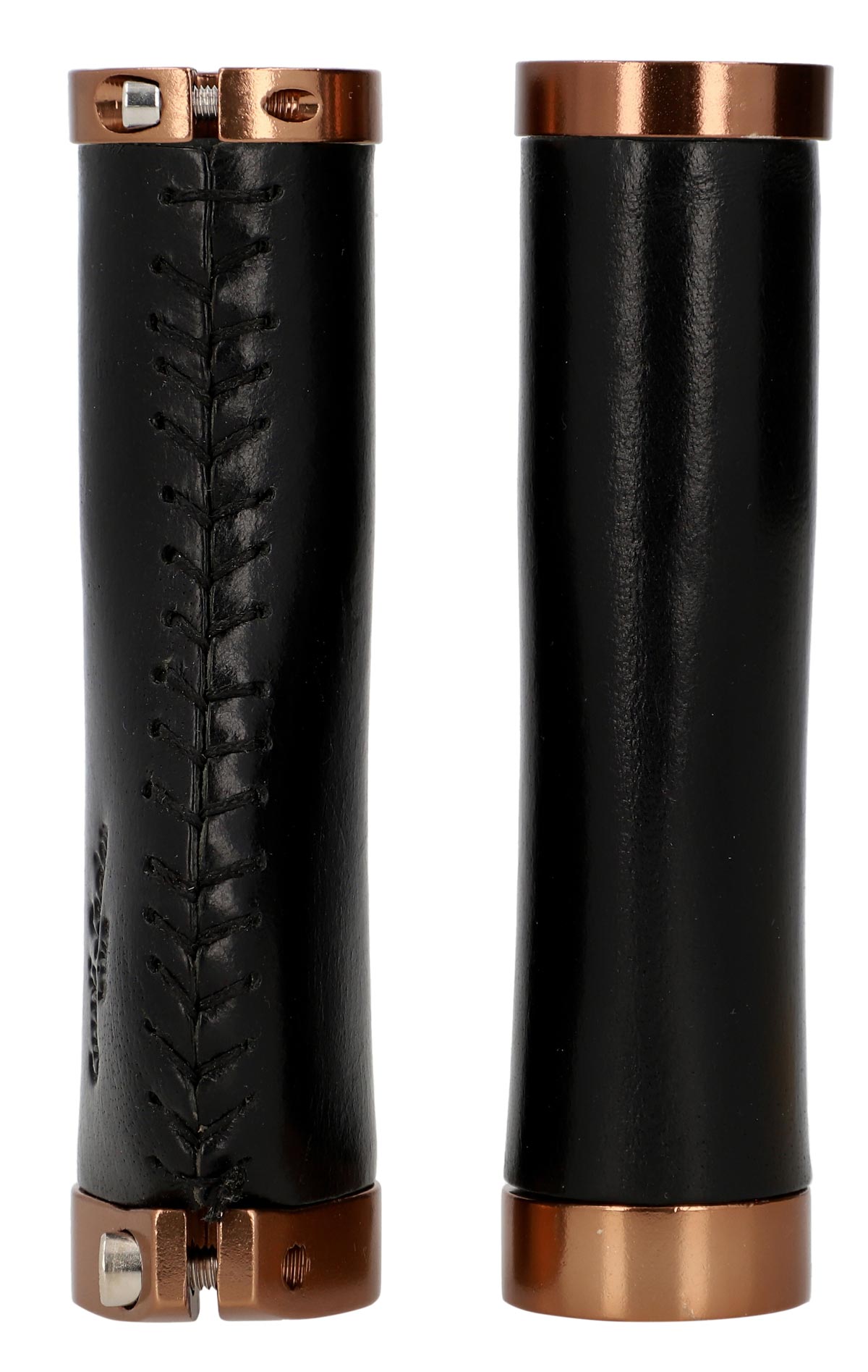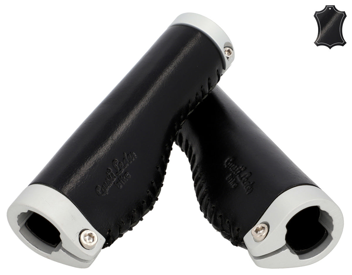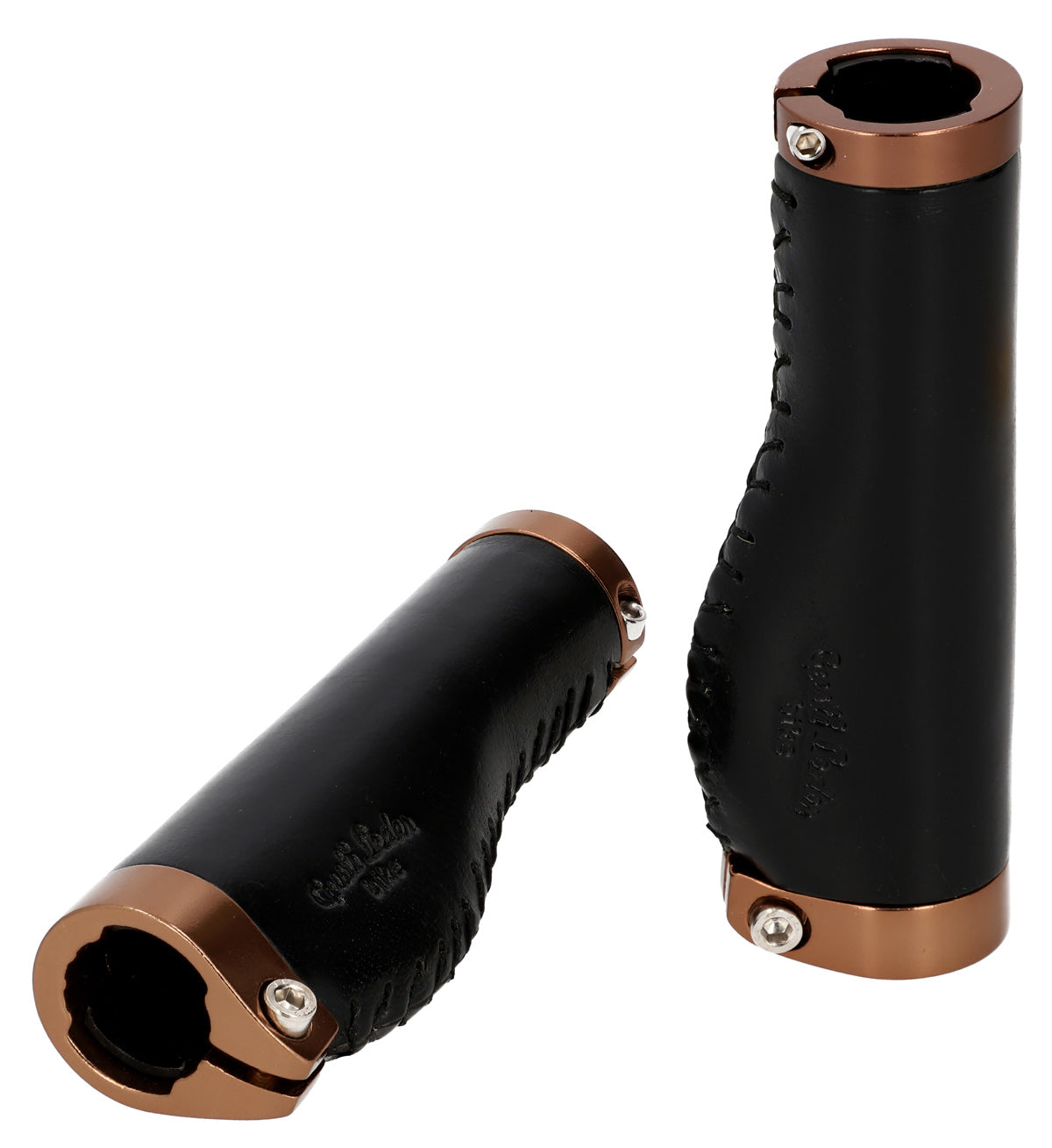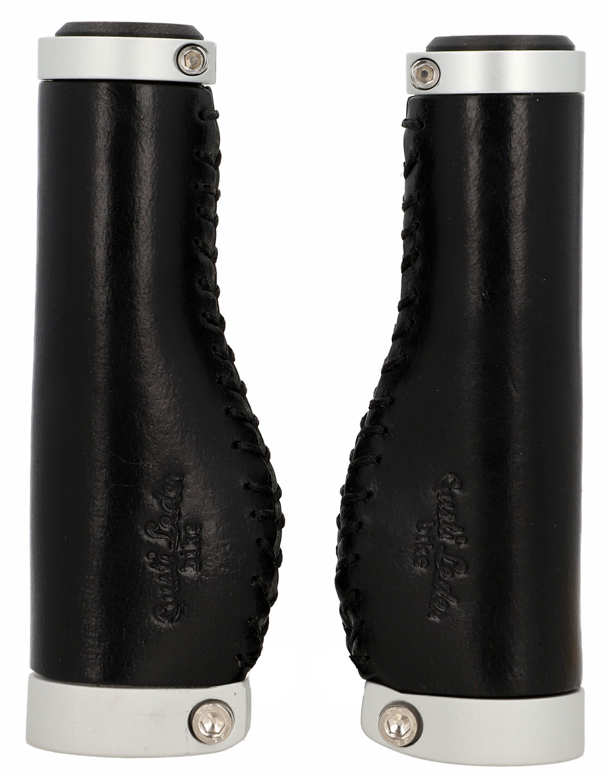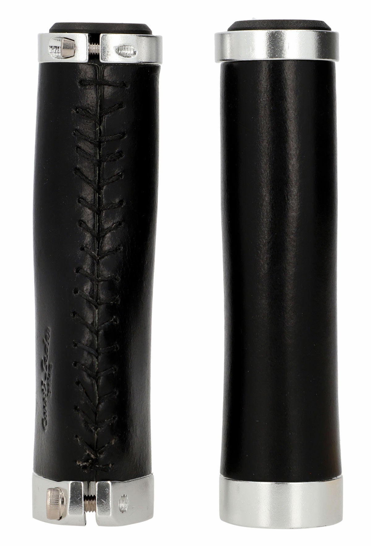 De läderklädda styret "Phil A." passar lika bra till en trendig single-speed cykel som till en klassisk holländsk cykel och är enkla att montera. Deras högkvalitativa materialblandning av färgat aluminium och 100% äkta läder ger utmärkt grepp och ett konstant bra styrbeteende. Samtidigt anpassar de sig idealiskt till dina händers anatomi, dämpar stötar och vibrationer och ökar därmed greppsäkerheten. Efter en kort inkörningsperiod kommer du inte längre vilja vara utan den märkbara komforten och den behagliga känslan av dessa handtag.