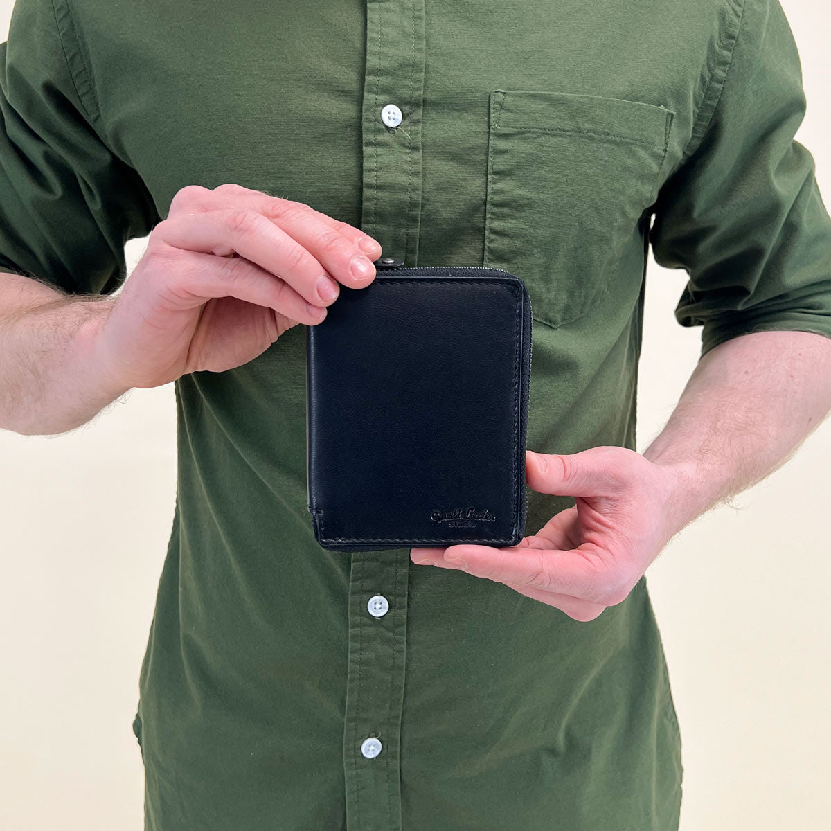 Den här lilla plånboken imponerar starkt, inte bara med en stor funktion och praktiskt utformning, utan också med sin tidlösa design. Den passar bekvämt i alla jackfickor, bakfickor eller ryggsäckar.