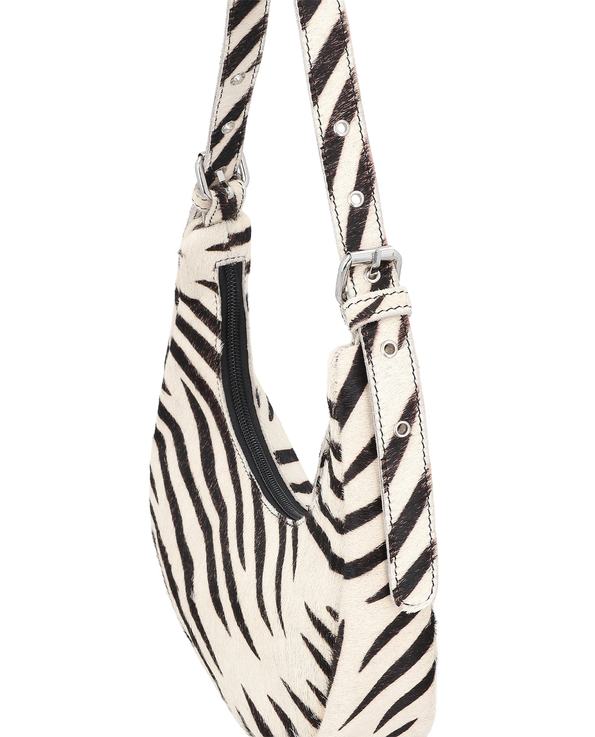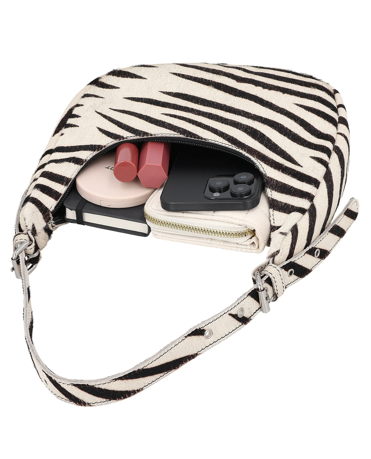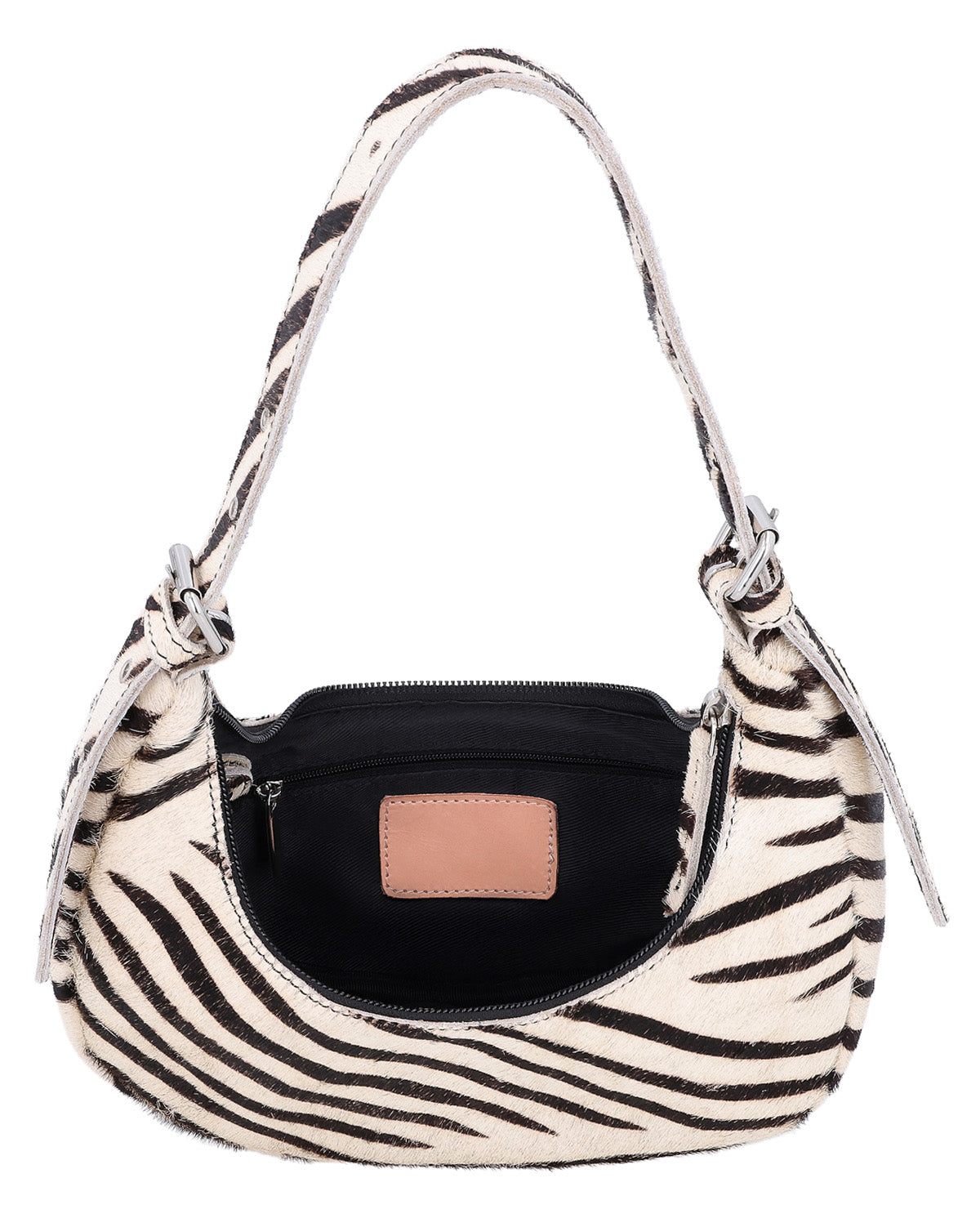 Handväska med AirTag-fack, nyckelring och zebramönster