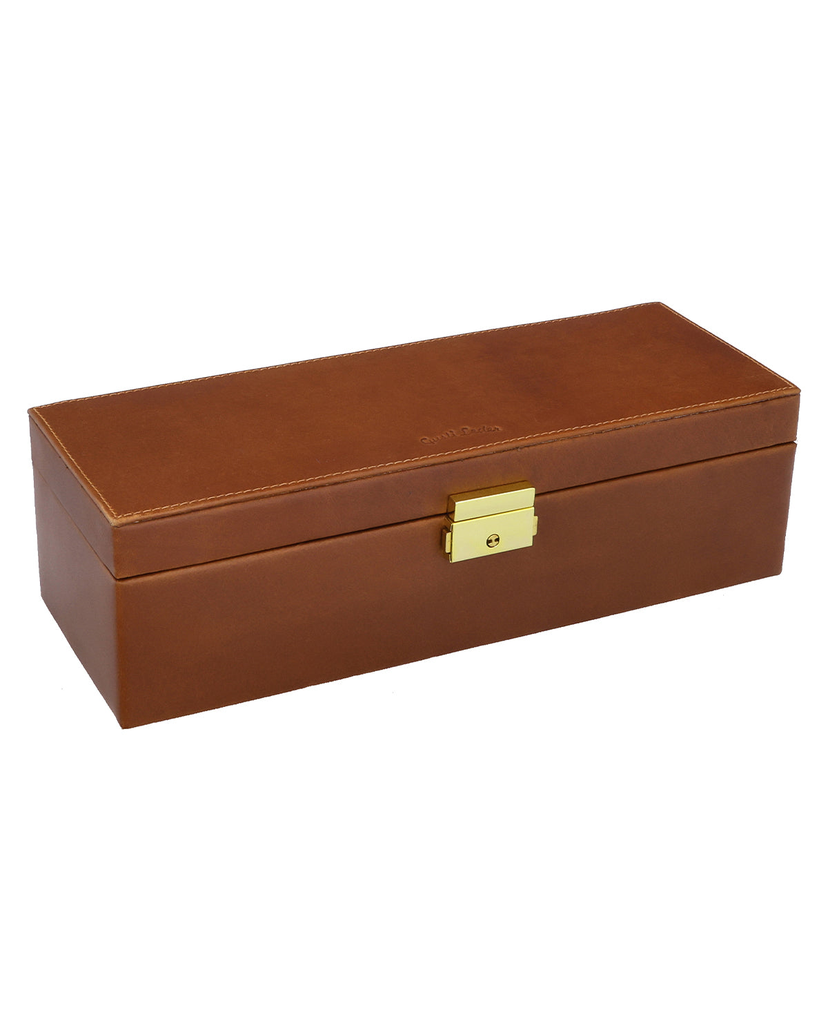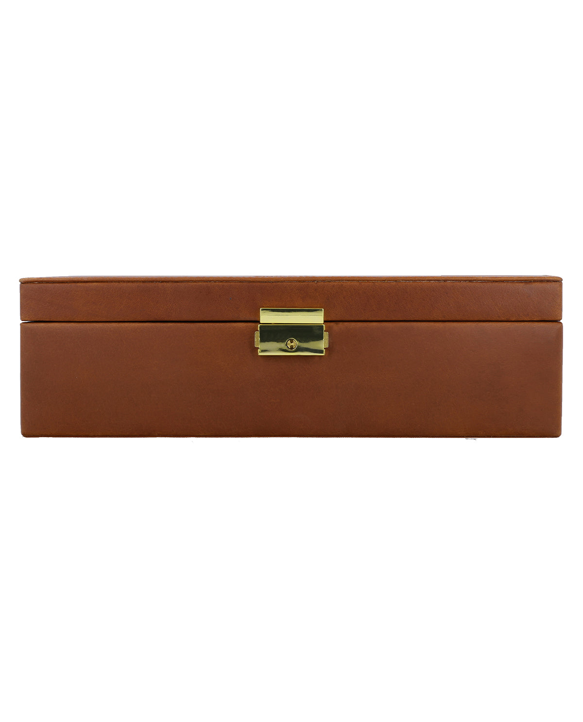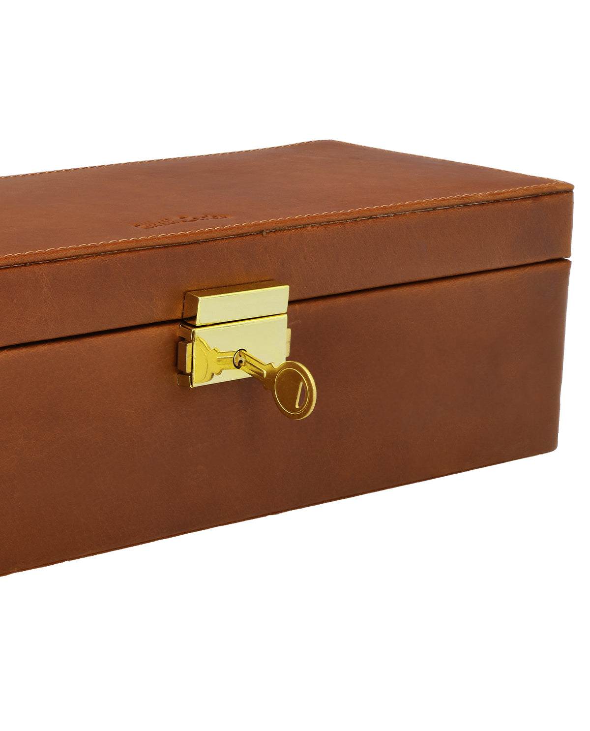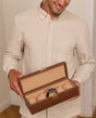 Med "Marcel" förvarar du dina favoritklockor säkert, elegant och stilfullt. Klocklådan i högkvalitativt läder med slät, elegant yta förenar sofistikerad design med funktionell finess. Det lyxiga yttre ger den en tidlös utstrålning, medan det mjuka, tygfodrade inre skyddar dina klockor pålitligt mot repor och damm. Med sina klara linjer och den varma läderstrukturen är "Marcel" inte bara en praktisk förvaringsplats, utan också ett dekorativt inslag på varje nattduksbord eller hylla.