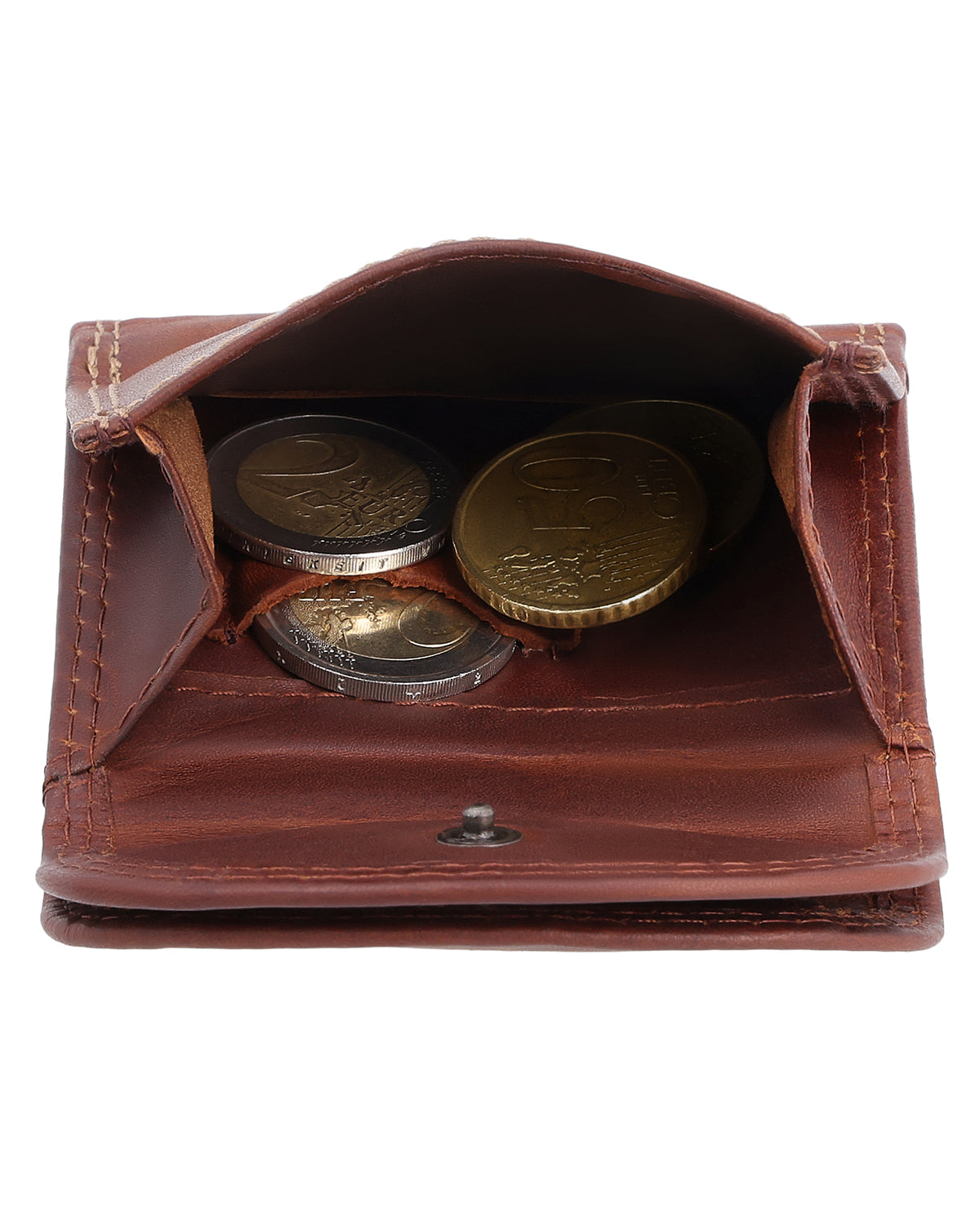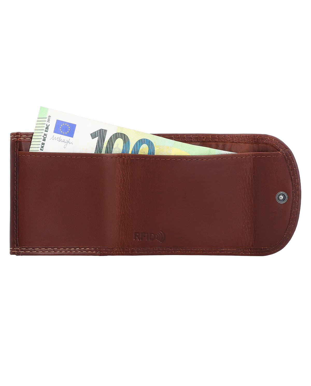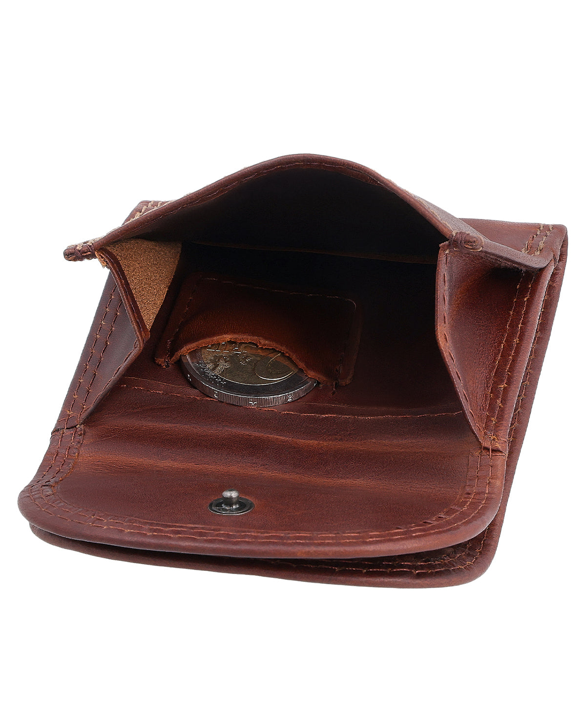 Det robusta men mjuka, högkvalitativa garvade lädret ligger bekvämt i handen. "Leif" är superplatt och passar i alla byxfickor. Dina sedlar får enkelt plats i ett litet sidofack och på insidan finns ett fack för mynt – säkrat med en tryckknapp. Särskilt praktiskt: ett litet myntfack för en enda mynt, t.ex. för kundvagnen, så att du snabbt har den till hands. Med sina kontrastfärgade dekorativa sömmar och dubbla halvrunda stängning är "Leif" också elegant. För att tillgodose alla smaker finns "Leif" i olika färger. Ren minimalism!