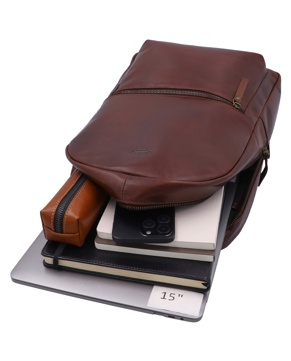 Med de justerbara axelremmarna anpassar sig "Klaas" perfekt efter din bärkomfort. Den integrerade trolleyremmen gör resor särskilt bekväma, eftersom du enkelt kan fästa ryggsäcken på din resväska. På utsidan finns ytterligare ett fack med dragkedja samt en praktisk läderkrok för snabb åtkomst till småsaker. Inuti sätter den inbyggda graverade patchen en personlig prägel och gör "Klaas" till något alldeles speciellt. Oavsett om det är för jobbet, universitetet eller fritiden – denna ryggsäck följer dig pålitligt och stilfullt genom varje dag.