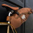 Tack vare den praktiska rolltoppen förblir innehållet säkert förvarat och lättillgängligt. Väskan fästs säkert runt sadelstolpen med en bred läderrem med kardborreband, medan ytterligare läderremmar med spännen garanterar stabil fästning under sadeln. Dess vintage-look kombinerar funktionalitet med en unik stil som berikar varje tur.