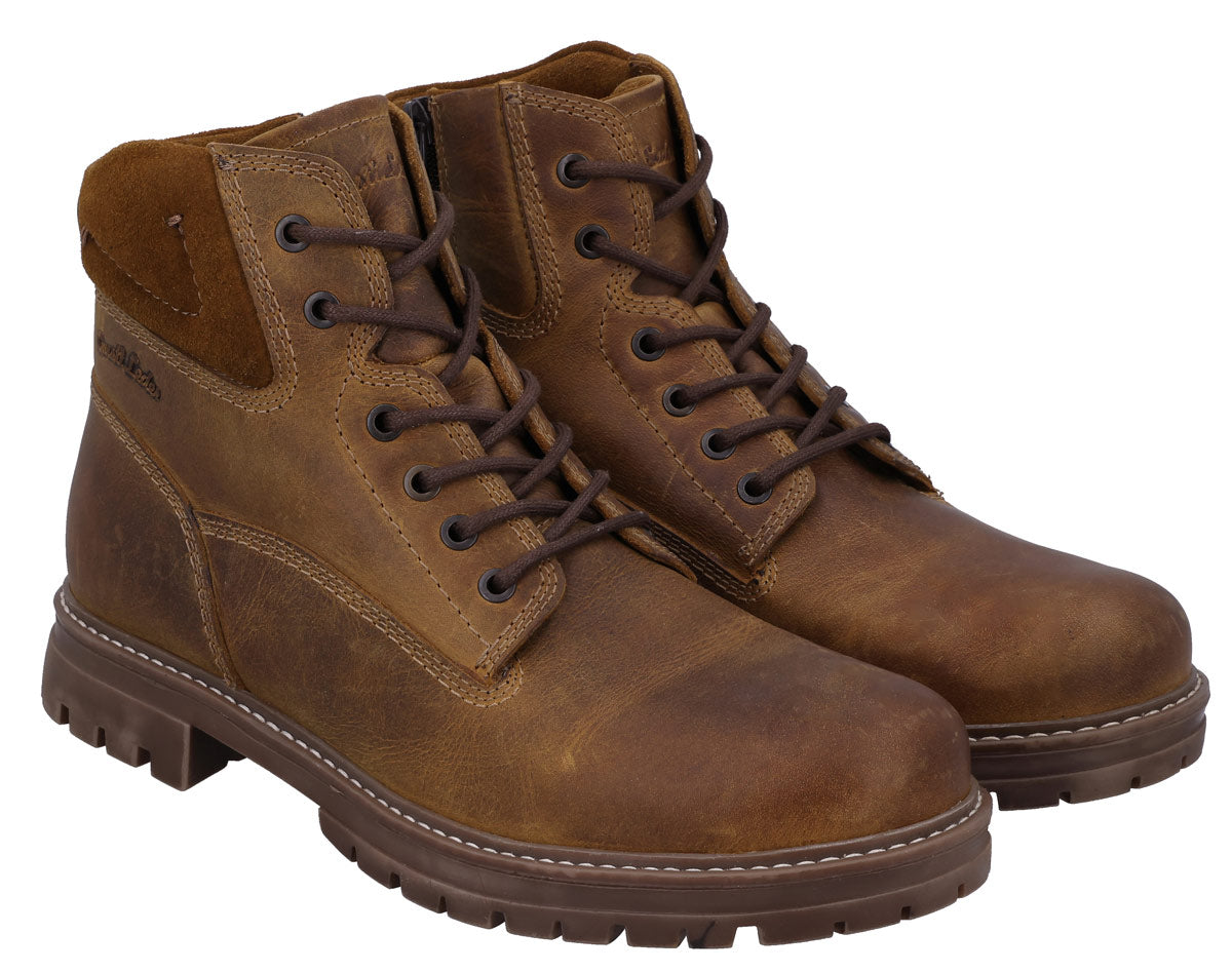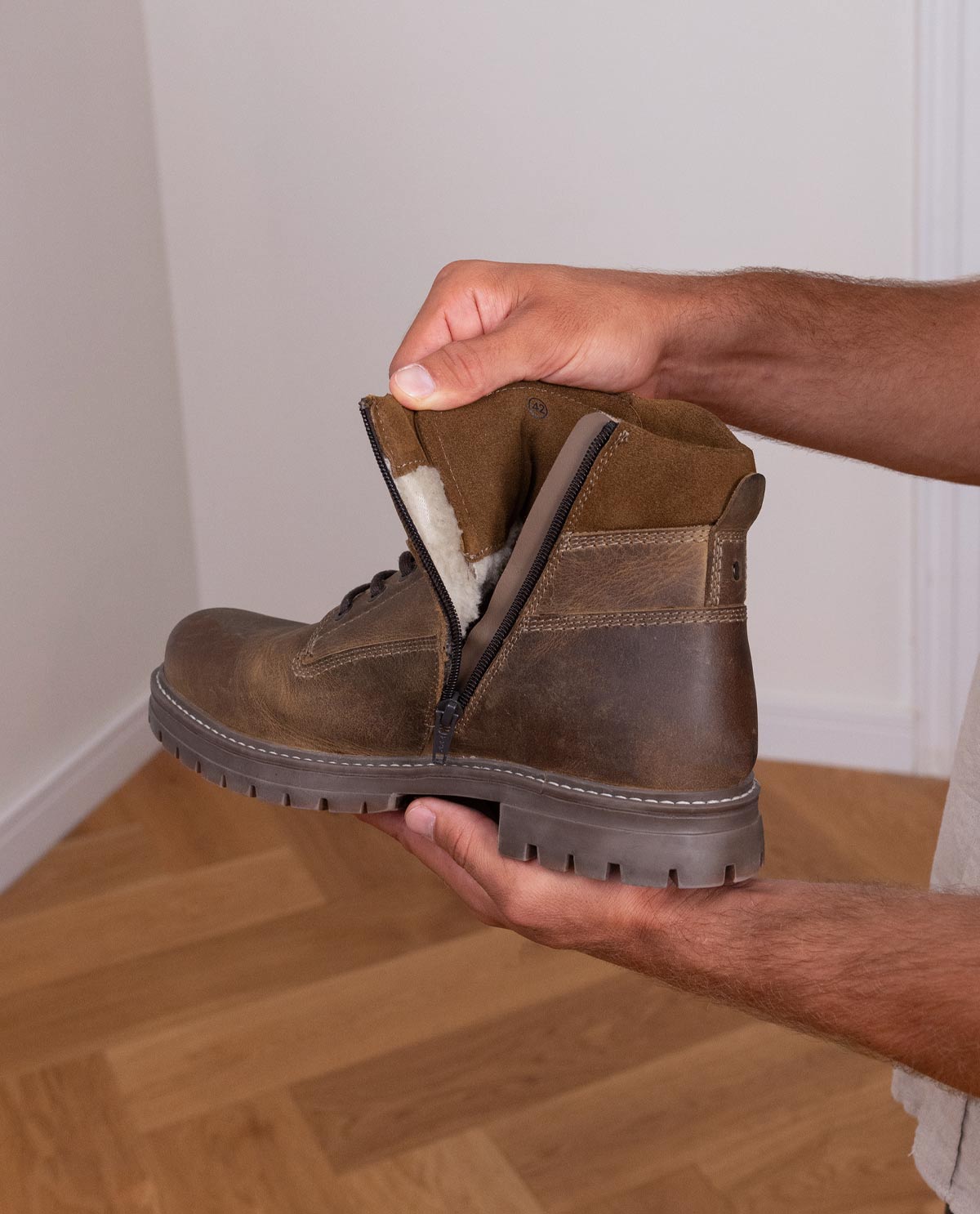 Med "Falco" är du väl rustad för den kalla årstiden. Dessa högkvalitativa vinterskor av finaste nötläder imponerar med sin robusta bearbetning och moderna look. Det klassiska snördesignen med stabila metallöljetter ger säker passform, medan den sidodragkedjan gör det särskilt bekvämt att ta på och av skorna. Den dubbla sömnadsledningen och den förstärkta hälen ger extra stabilitet och hållbarhet. Den mjukt vadderade skaftet anpassar sig bekvämt till ditt ben och förhindrar tryckpunkter – perfekt för långa vinterdagar fulla av rörelse.